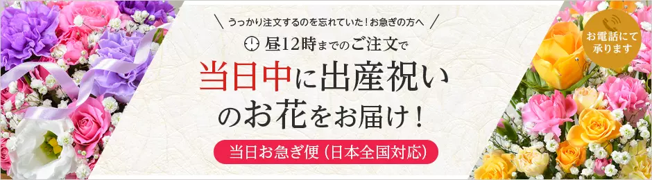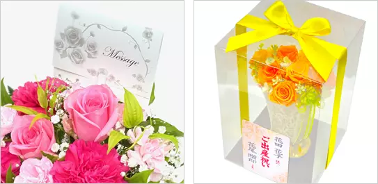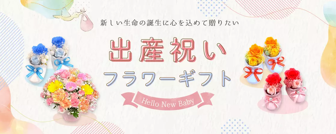 出産祝いに贈るお花に明確な決まりはありませんが、 「カスミソウ」の入ったフラワーギフトがとても人気があります。 それはカスミソウは英語で「baby`s breath(ベイビーズブレス)」といい 「赤ちゃんの吐息」という素敵な意味があるからです。 是非、「カスミソウ」入りのフラワーギフトを探してみてくださいね! また、贈り先様のイメージや好みにあわせてお花のデザインや雰囲気を選んでみたり 生まれてきた赤ちゃんが男の子、もしくは女の子などの要素も含めて色合いを決めてみるのも良いでしょう。 お花のスタイルでは、ママのお手を煩わせない「アレンジメント」や「プリザーブドフラワー」を贈る方が多い傾向にあります。 「花束」はご自宅に訪問する際のプレゼントに特に人気がありますよ。 頑張ったママを称えて、赤ちゃんが生まれた幸福をフラワーギフトで祝福しましょう!
