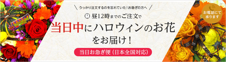 ※下記のボタンをクリックしていただくと、ハロウィンの入ったフラワーギフトを一覧からお選びいただけます。