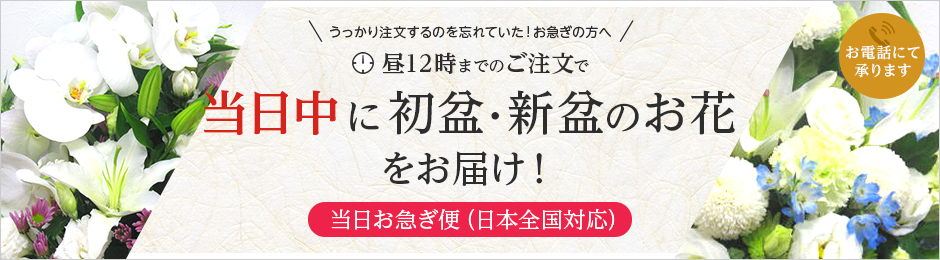 ※下記の商品ボタンをクリックしていただくと、初盆・新盆にふさわしいお花を一覧からお選びいただけます。