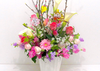 アレンジメント器付きなので花瓶を用意する必要がなく、お届け後すぐに飾ることができます。女の子なので春らしい雰囲気のお花を贈るととても喜ばれますよ。