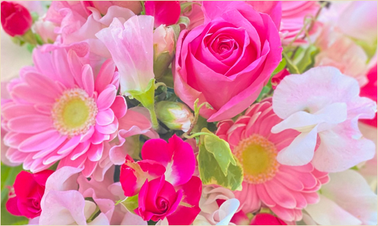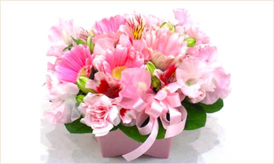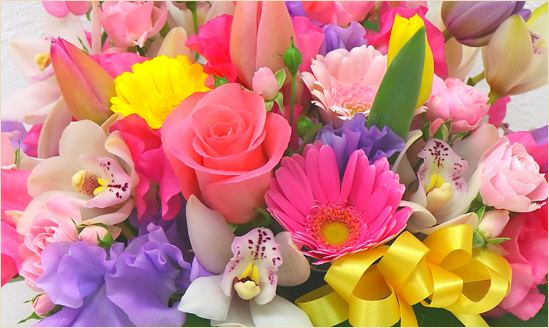 お花の色合いでは、「ピンク&レッド系」「イエロー&オレンジ系」「ミックス系」などの女の子らしい明るめな色合いを贈る傾向にあります。