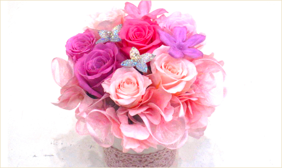 プリザーブドフラワー生花に特殊加工を施した枯れない魔法のお花。美しさは半永久的に持続するのでひなまつりを初めて迎える初節句の記念として贈るのも良いでしょう。