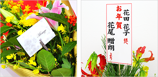 メッセージカードや名札・立札もお付けできます