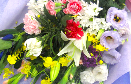 ご家族やご先祖様が亡くなってからお日にちが経っているということから、色合いは白系を中心としたお花が主流ですが、明るいお色が入っていても良いでしょう。