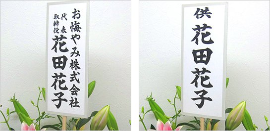お供え用の名札・立札をお付けする場合、亡くなって間もない方への枕花や法要、お盆・初盆、お彼岸などの行事や節目の法事などでお付けする場合が多いです。