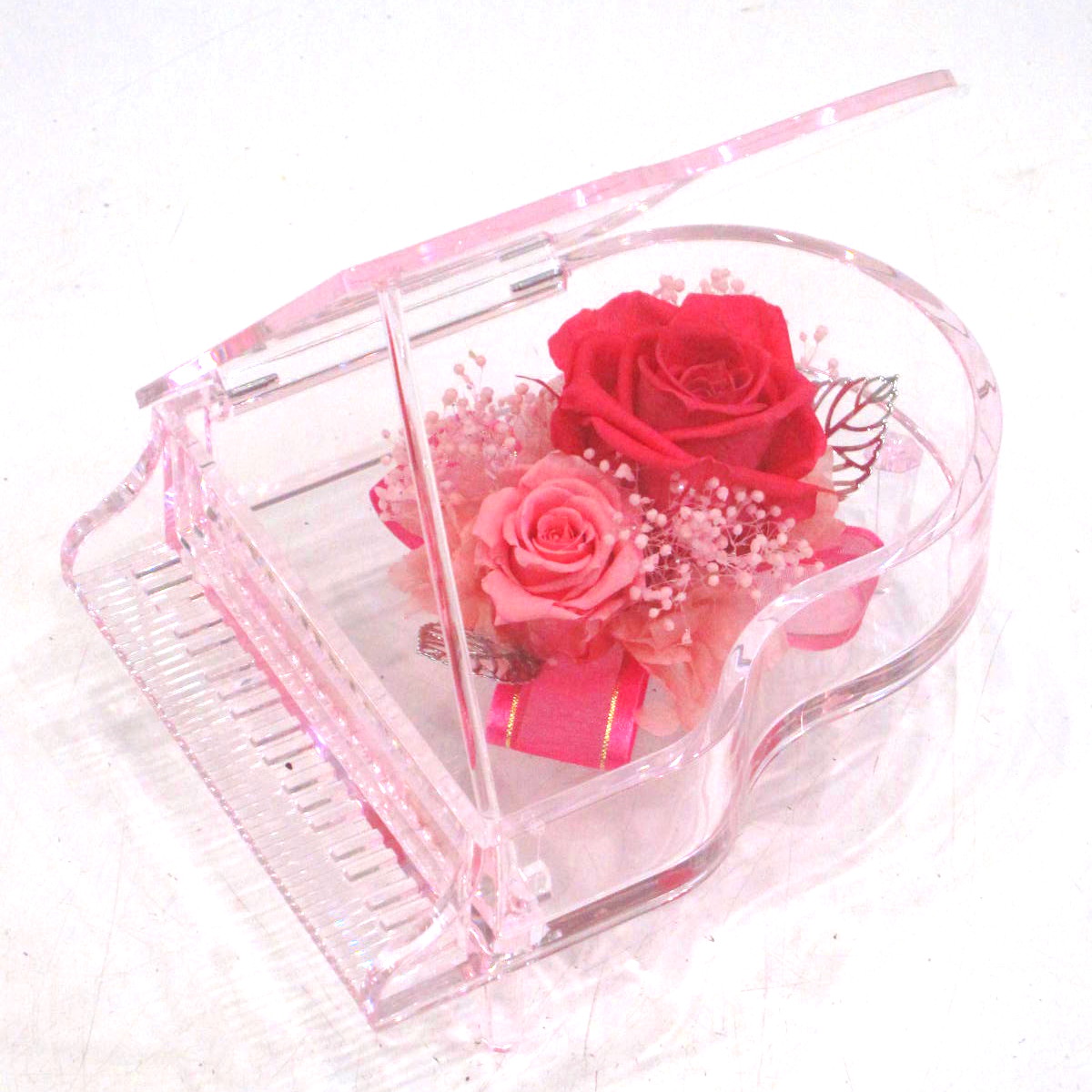 また、衣類、床、壁等にプリザーブドフラワーが直接触れると、色移りする場合がございますのでご注意下さい。