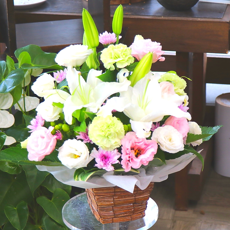 優しい気持ちになれる白&ピンク系のお供えアレンジメント
