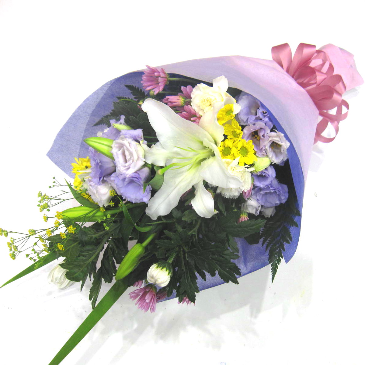白系主体の淡い紫系を入れた上品なアレンジメント