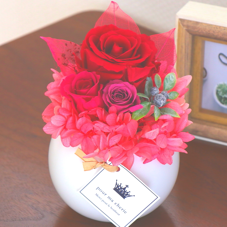 《上品でお洒落》高級感漂うプリザーブドフラワー(レッド)