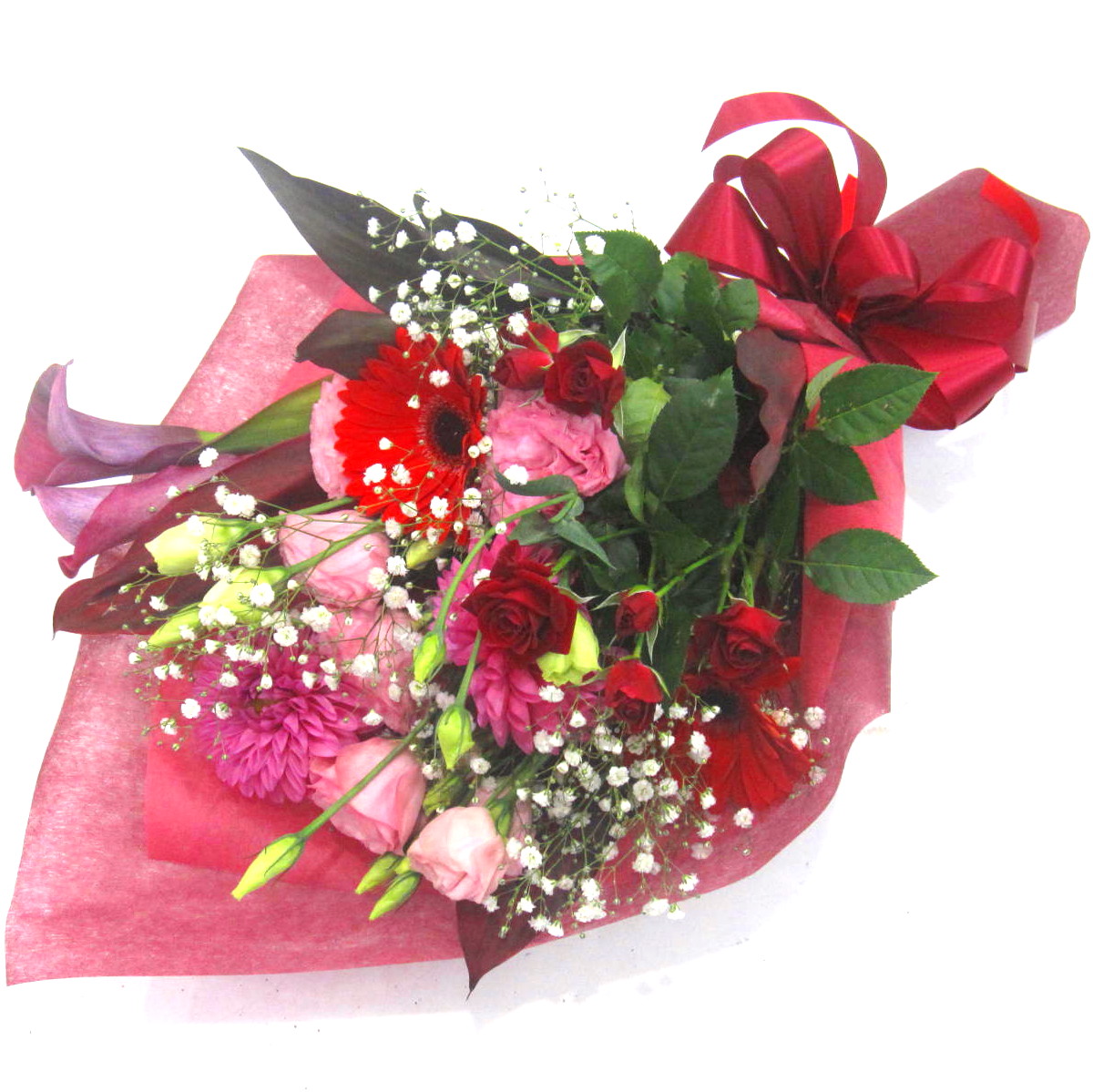 白いカラーとかすみ草の花束