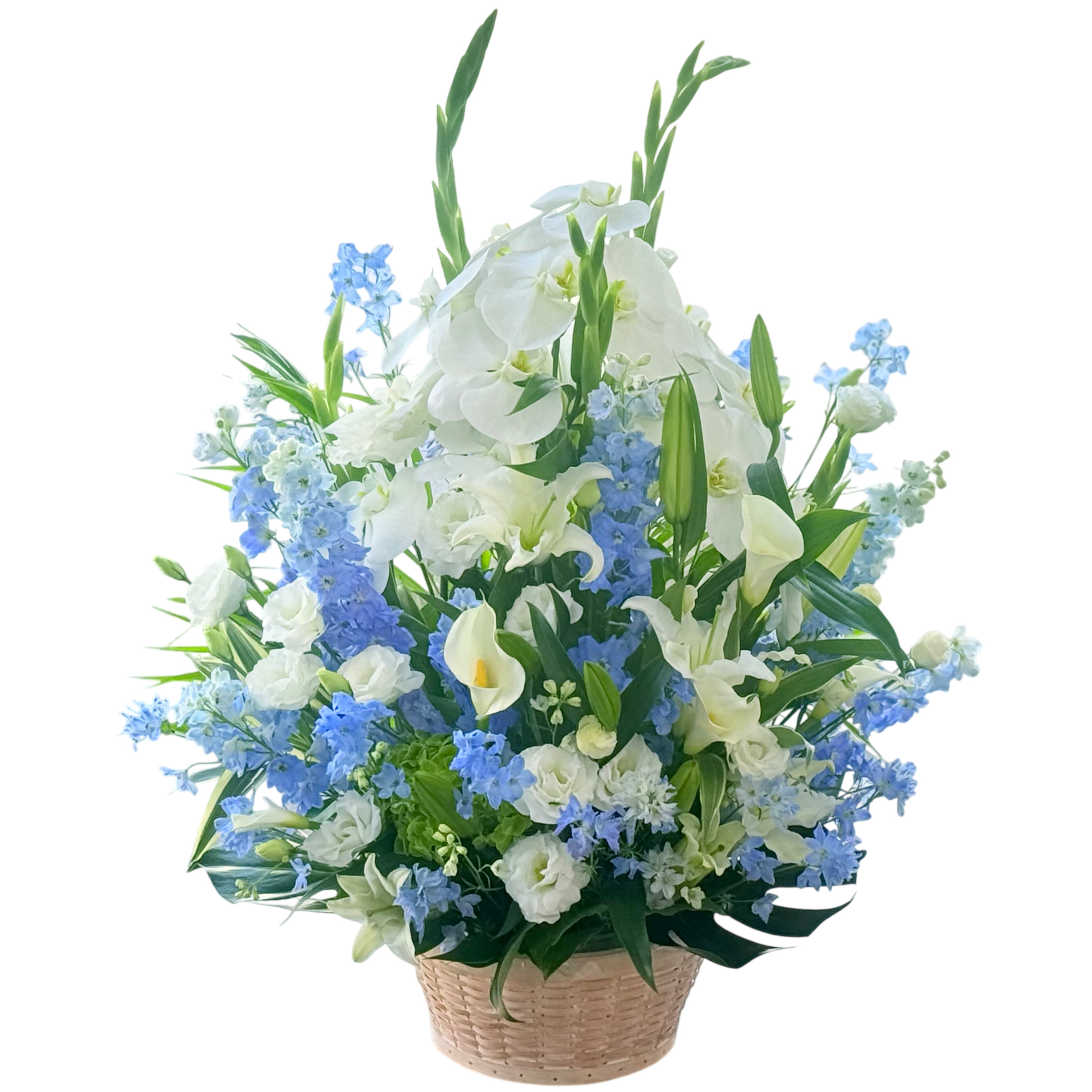 清らかに彩る白&ブルー系のお供えアレンジメント
