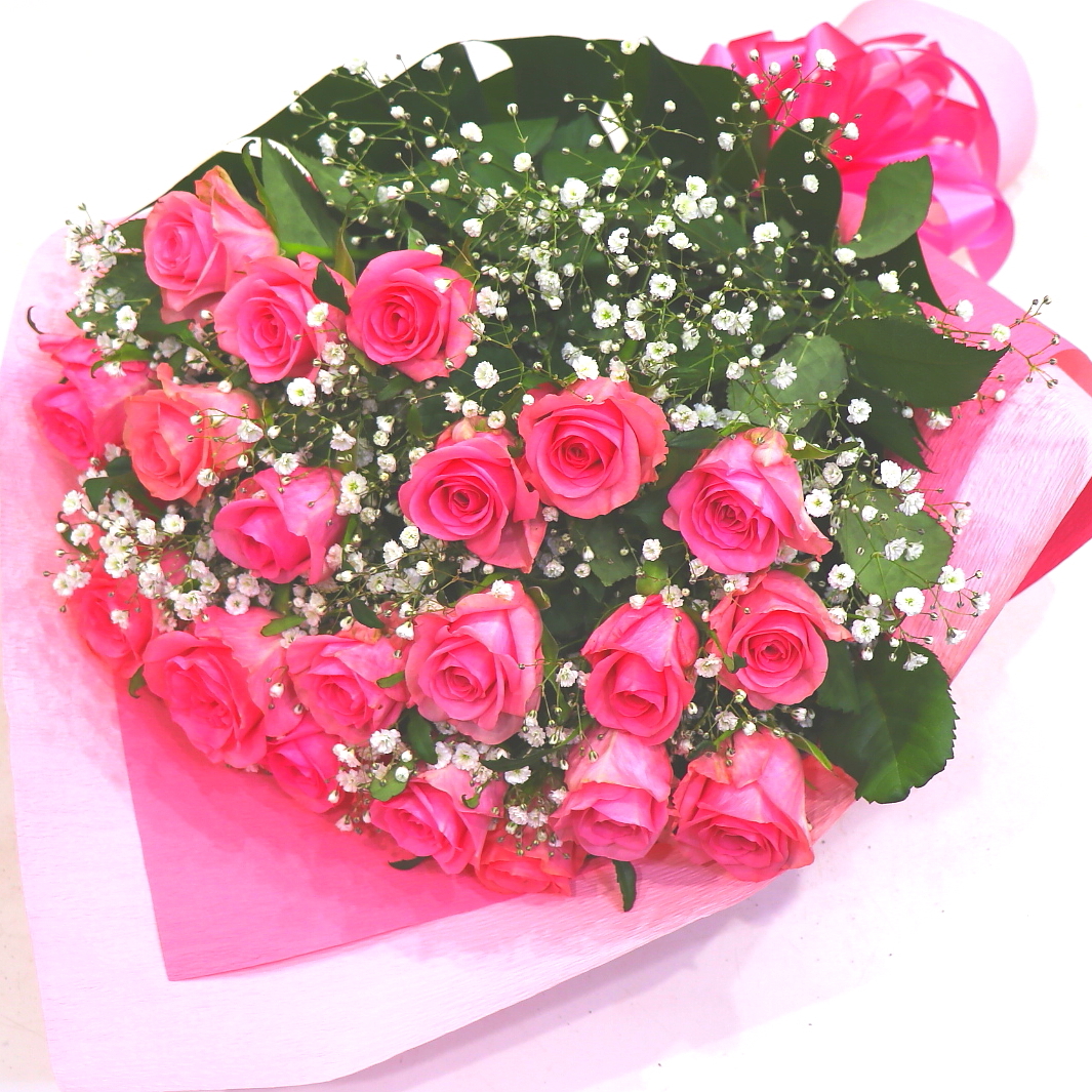 【厳選】赤いバラとピンクバラとかすみ草の華やか花束