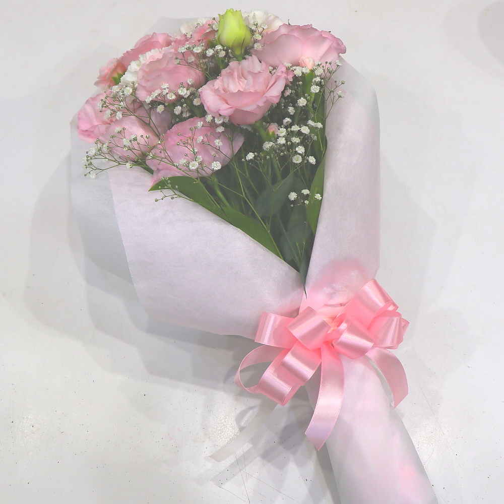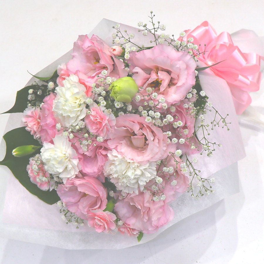 花材: メイン トルコギキョウ、カーネーション その他 かすみ草、葉物類