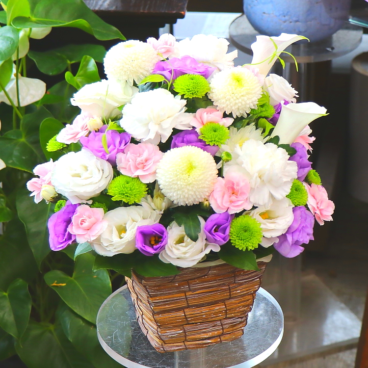 故人を偲び、ご家族様やご遺族様の心を癒すアレンジメント。お供え・お悔やみ、ご命日やお盆などにオススメです。【15時迄のご注文で翌日届きます】※こちらの商品についてのご相談、ご質問等ございましたら(メール)または(お電話)にて承ります。