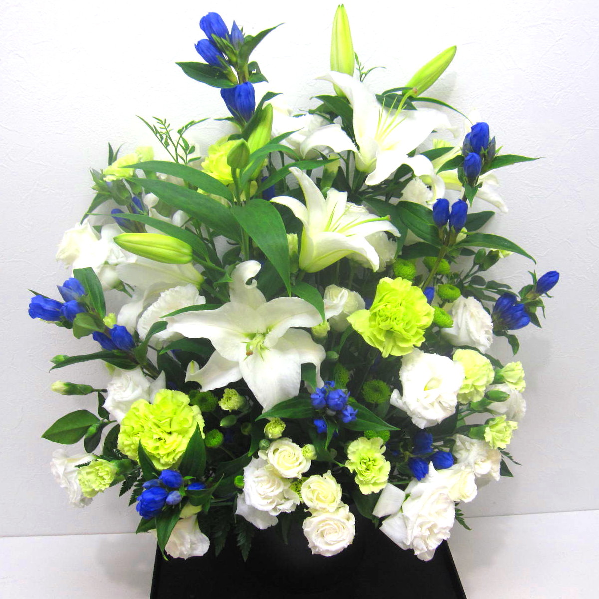 花材: メイン ユリ、リンドウ、トルコギキョウ、カーネーション、スプレーマムなど その他 葉物類など