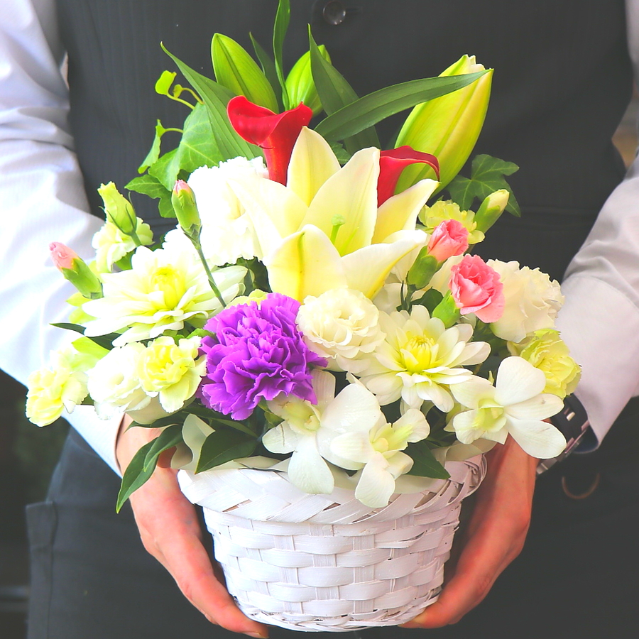 落ち着きのある色合いが素敵なお供え・お悔やみアレンジメントです。白のユリを中心にやカーネーション、ダリアなどを入れて上品なイメージで制作致します。花持ちも良く、この時期のお供え・お悔やみ用途にいかがでしょうか。目を閉じて心の中にいる故人への想いをそっと呼び起こします。故人への供養はもちろん、ご家族やご遺族様の心を癒すことでしょう。当店では、お客様のその想いをしっかりと受け止め、心を込めて制作致します。故人を偲ぶ色々なシーンで是非、ご利用下さい。