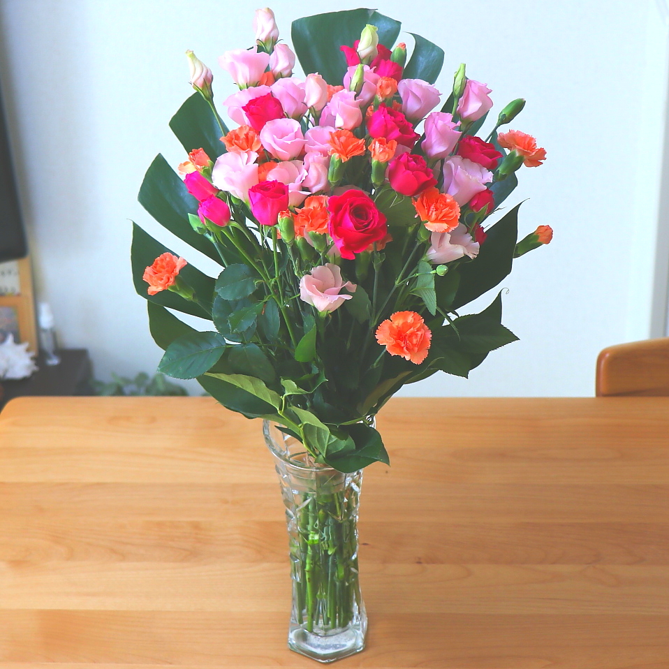 花材: メイン SPバラ、SPカーネーション、トルコギキョウなど その他 葉物類など