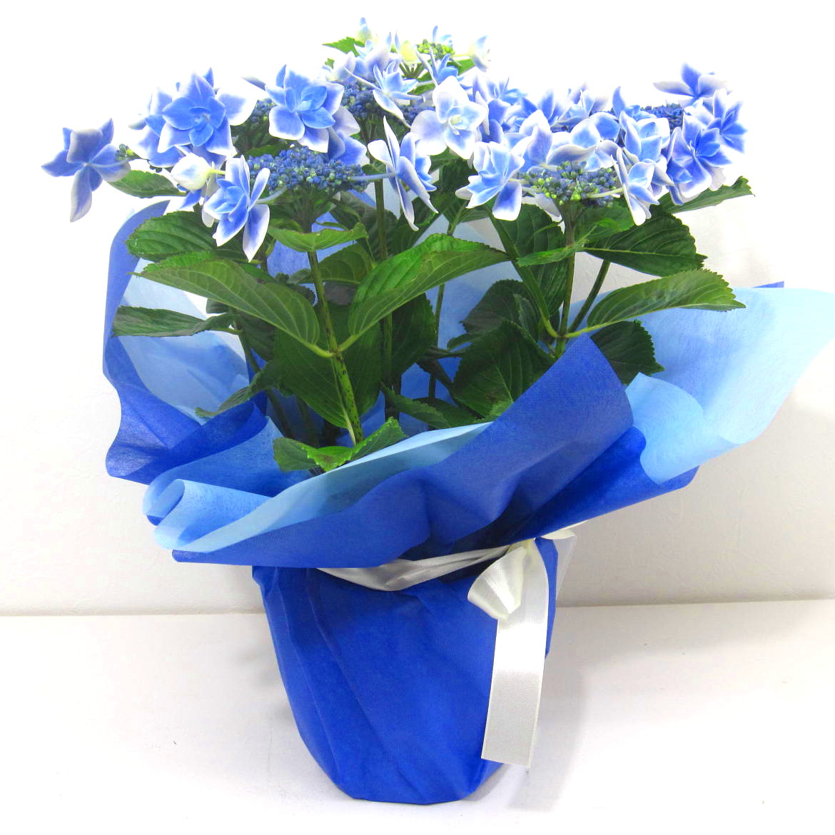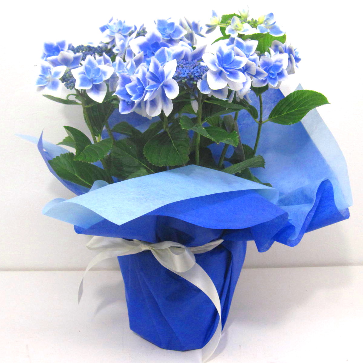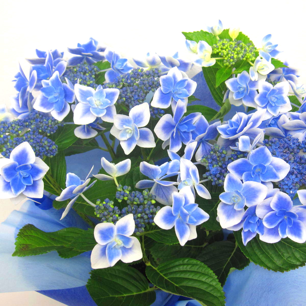 珍しいブルー色の星咲きアジサイ鉢です。【15時迄のご注文で翌日届きます】※こちらの商品についてのご相談、ご質問等ございましたら(メール)または(お電話)にて承ります。