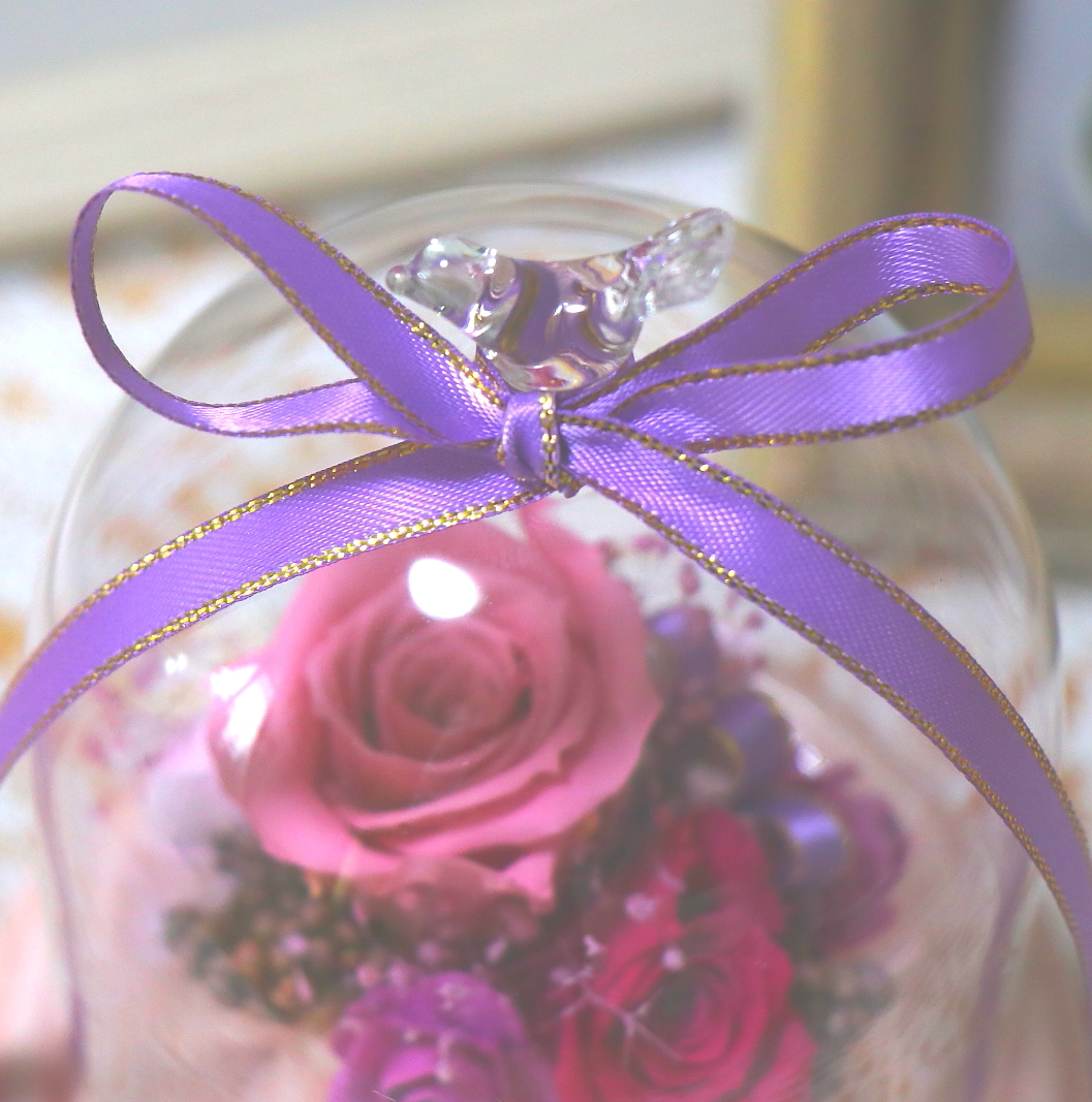 資材・ラッピング: ガラスドーム、モニメントピック類、リボン、ギフト専用BOX付き、フラワーケアカード(取扱説明書)