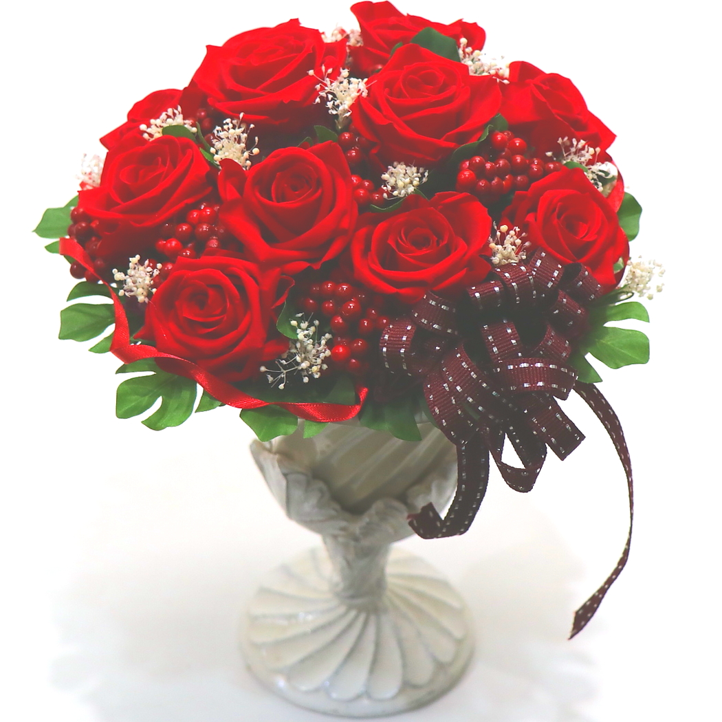 白い素敵な器にアレンジしたプリザーブドフラワーです。赤いプリザーブドローズをメインに高級感のある雰囲気でお作りします。しかもクリアケース付きなのでお部屋のインテリアとしてもお洒落に飾れるので貰って嬉しい贈り物ですよ。当店ではお客様の想い大切に【こころを込めて】お作りいたします。静岡県駿東郡長泉町から日本全国へお届けします。是非、想いを込めたフラワーギフトにいかがですか!?