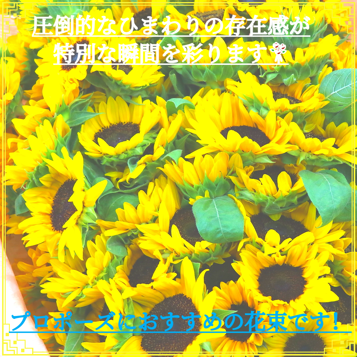 花材: メイン ひまわり(大小ミックス)、葉物類 その他 プロポーズにふさわしく綺麗に美しくラッピング致します。