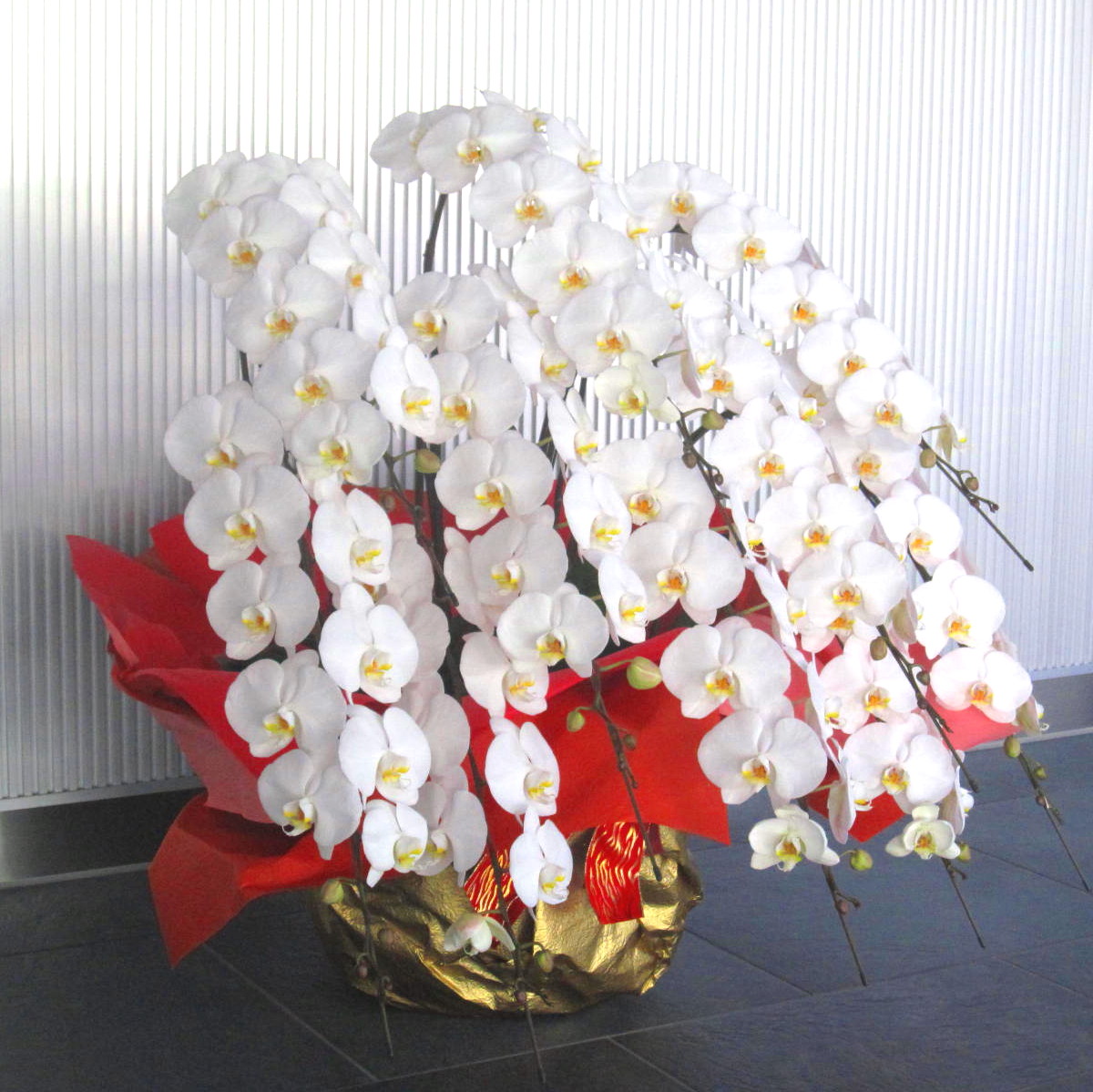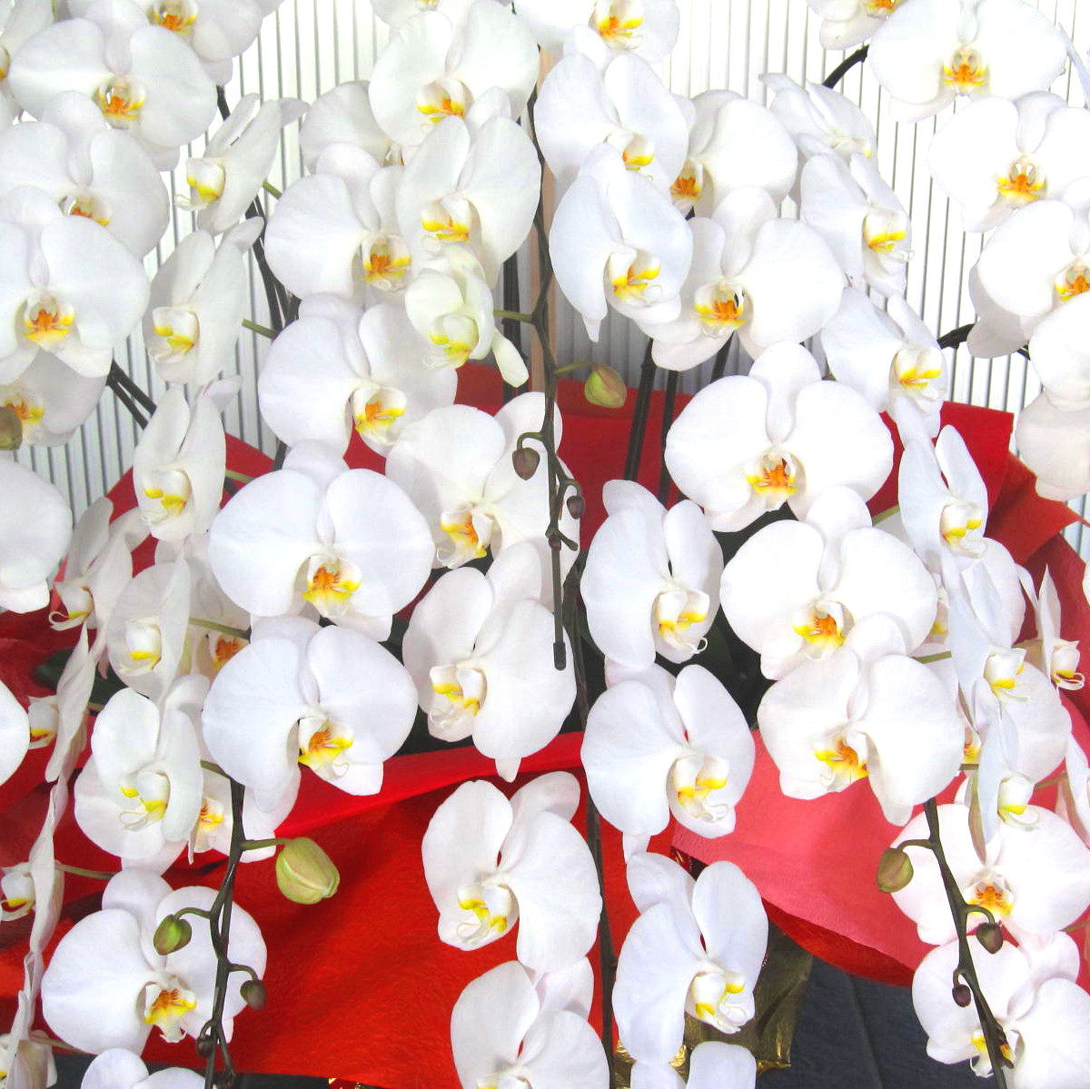 迫力が違う10本立ちの大輪系の白色胡蝶蘭です。お花はだいたい130輪以上お花が付いています。他とは比べ物にならないくらいの超特大サイズです。もちろん花持ちも抜群です。蘭好きな大切な方に、言葉では照れくさい想いをきっと届けてくれる胡蝶蘭です。お誕生日、御祝や開店・開業祝い、新改築祝い、式典などさまざまな贈り物に。