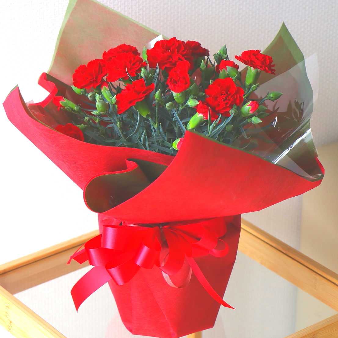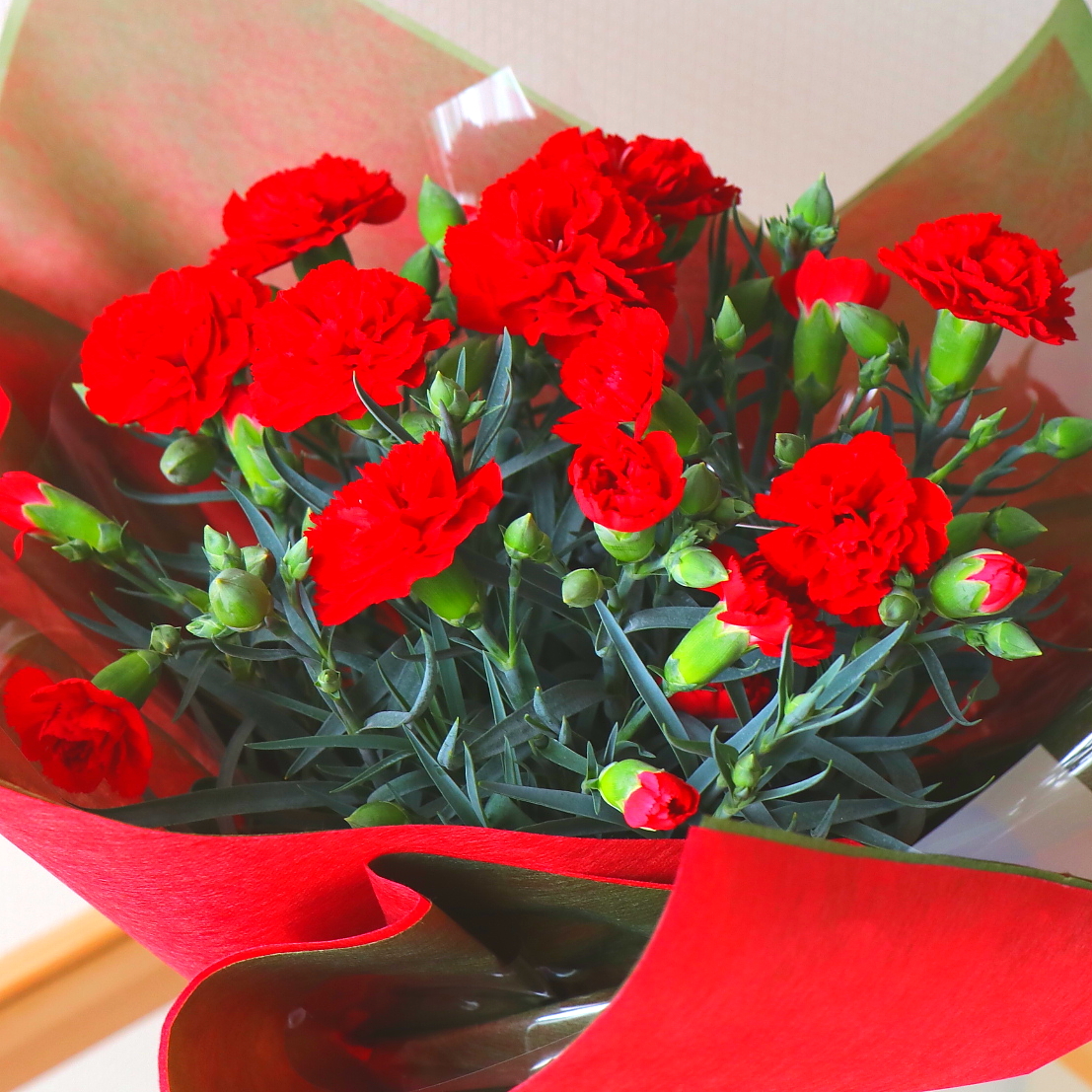 赤色の落ち着いたカーネーションの花鉢です。生産地と生産者にこだわったとても品質の良いカーネーションです。ラッピングも明るく上品にお包み致します。また、とても花持ちも良く、暑さにも強い季節の贈り物です。貰って嬉しい贈り物でとても喜んでいたただけると思います。当店ではお客様の想い大切に【こころを込めて】お作りいたします。静岡県駿東郡長泉町から日本全国へお届けします。是非、想いを込めたフラワーギフトにいかがですか!?