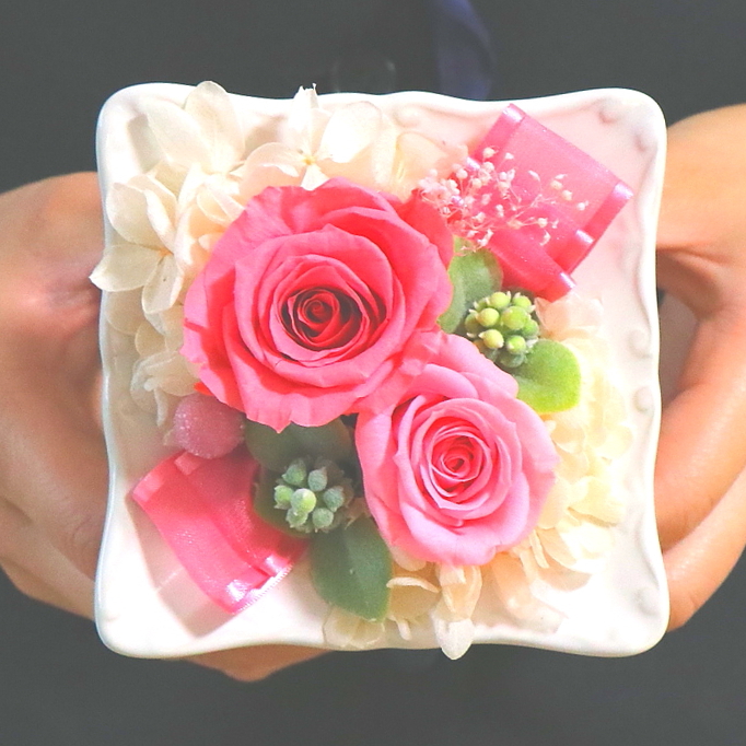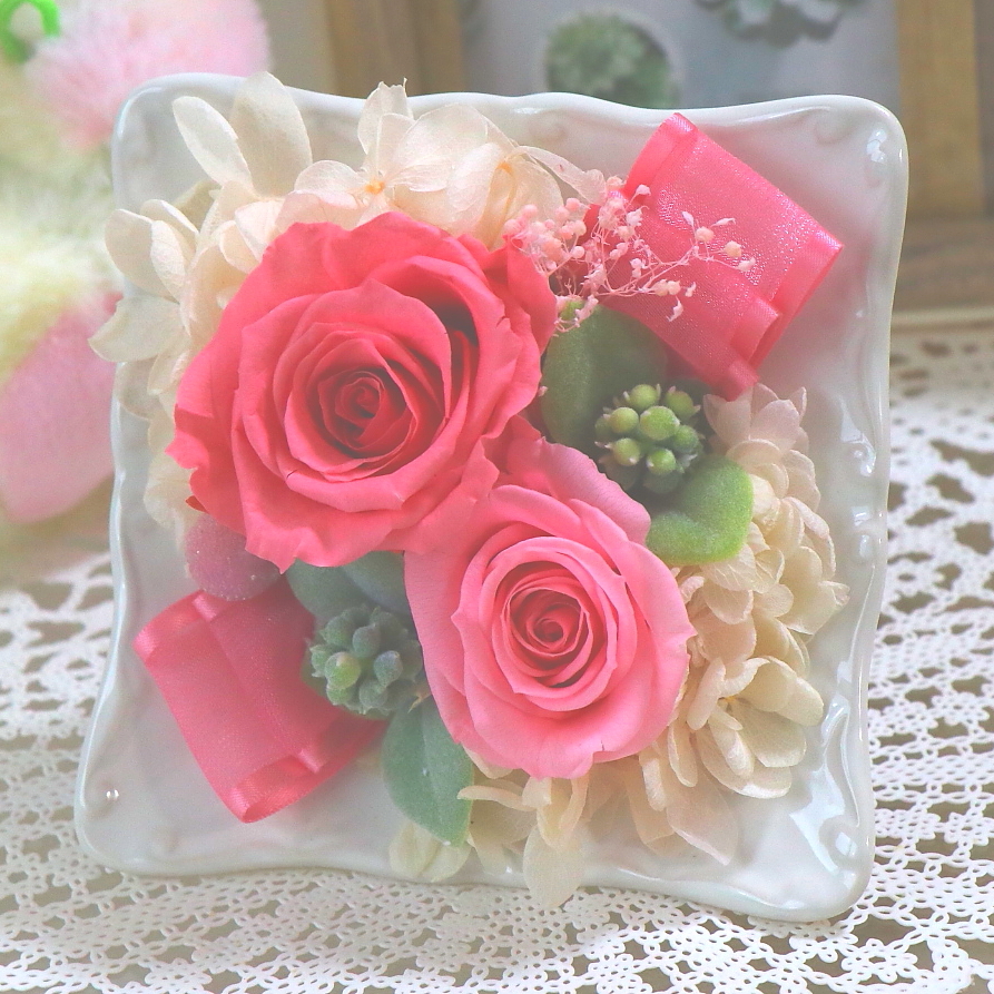 オシャレなスクエアのフレームにアレンジしたプリザ―ドフラワー。お部屋の空間にマッチし、どんな場所でもプリザ―ドローズが際立ちます。ピンク系のセンスの良い贈り物ですよ。【15時迄のご注文で翌日届きます】※こちらの商品についてのご相談、ご質問等ございましたら(メール)または(お電話)にて承ります。