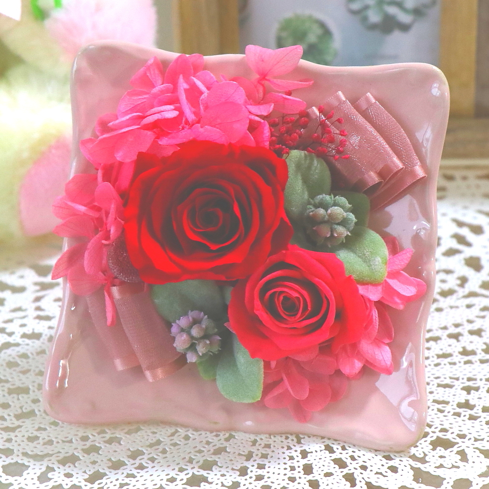 オシャレなスクエアのフレームにアレンジしたプリザ―ドフラワー。お部屋の空間にマッチし、どんな場所でもプリザ―ドローズが際立ちます。ピンク&レッド系のセンスの良い贈り物ですよ。【15時迄のご注文で翌日届きます】※こちらの商品についてのご相談、ご質問等ございましたら(メール)または(お電話)にて承ります。