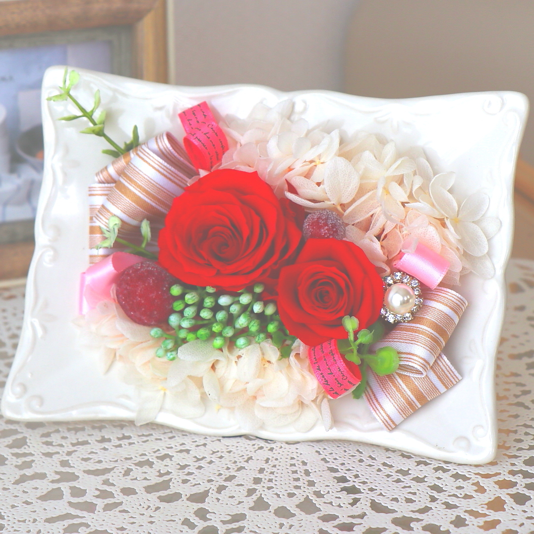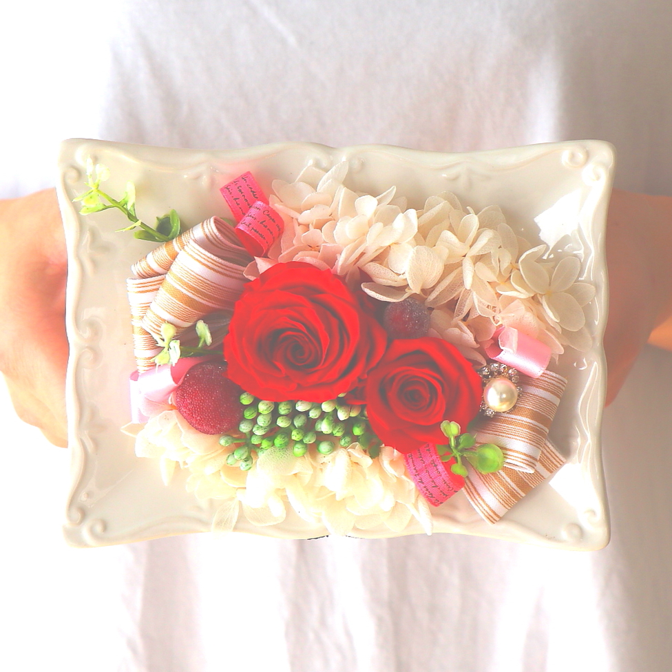長方形のオシャレなフレームにワインホワイト系のプリザ―ドローズアレンジしたプリザ―ドフラワー。お部屋の空間にマッチし、より立体的なアレンジがお部屋を彩ります。センスの良い贈り物ですよ。【15時迄のご注文で翌日届きます】※こちらの商品についてのご相談、ご質問等ございましたら(メール)または(お電話)にて承ります。