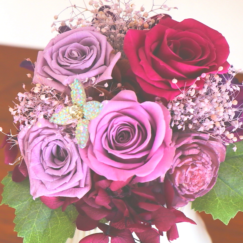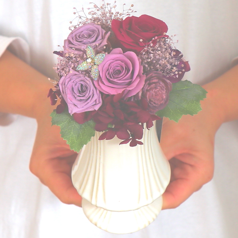 エンジェルパープルの天使が舞い降りてきそうな優しいプリザ―ドフラワー