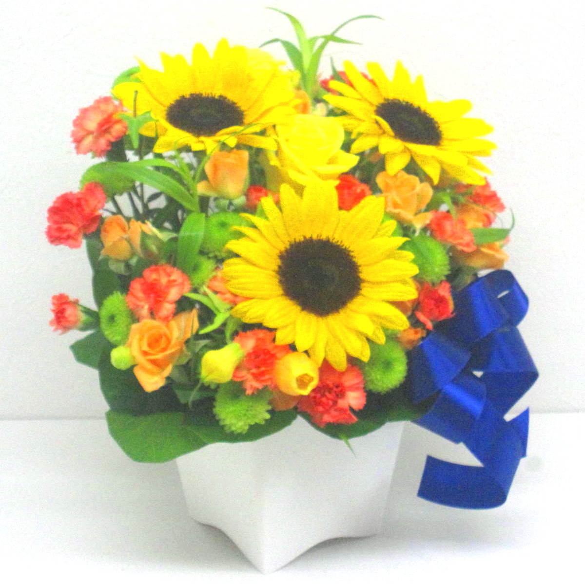 夏を感じる爽やかなアレンジメント。ギフトにプレゼントにピッタリです。【15時迄のご注文で翌日届きます】※こちらの商品についてのご相談、ご質問等ございましたら(メール)または(お電話)にて承ります。