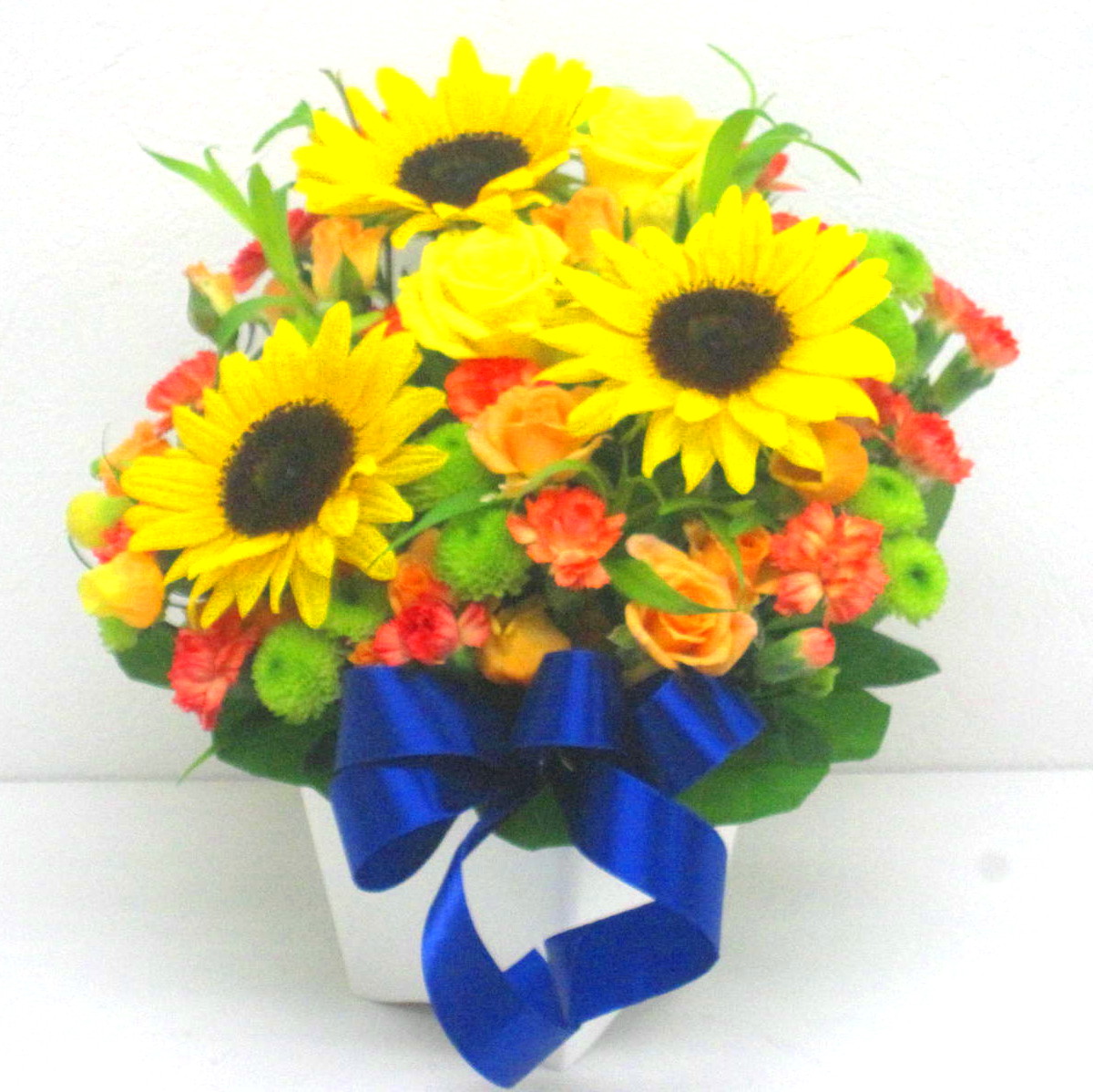 花材: メイン ヒマワリ、バラ、ミニカーネーションなど その他 葉物類など