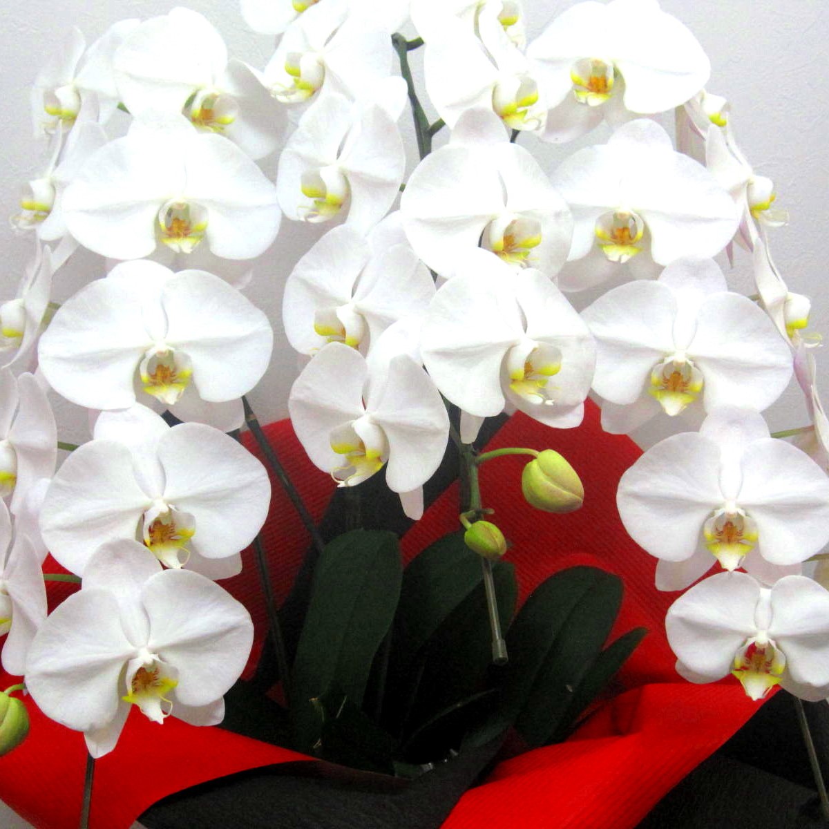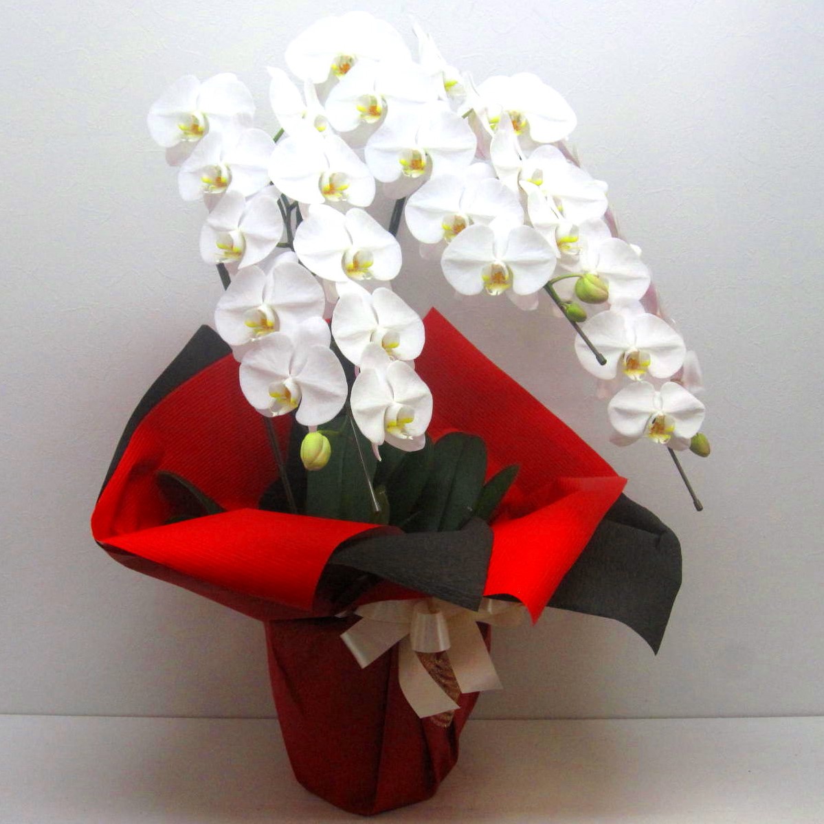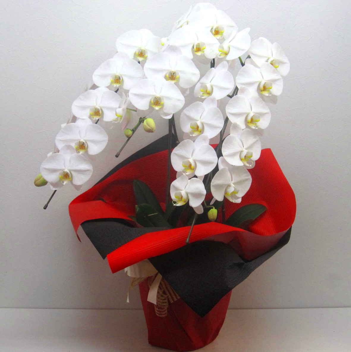 市場で厳選した高品質の生産者が仕立てるスタンダードな3本立ち大輪胡蝶蘭です。赤&黒色でカッコよくラッピング致します。【15時迄のご注文で翌日届きます】【メッセージカードやお名札も(無料)】でお付け致します※こちらの商品についてのご相談、ご質問等ございましたら(メール)または(お電話)にて承ります。