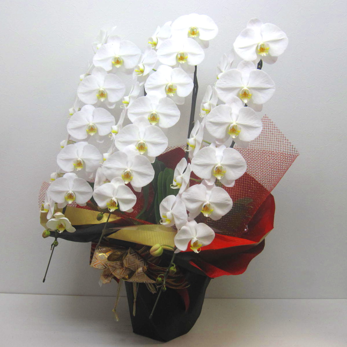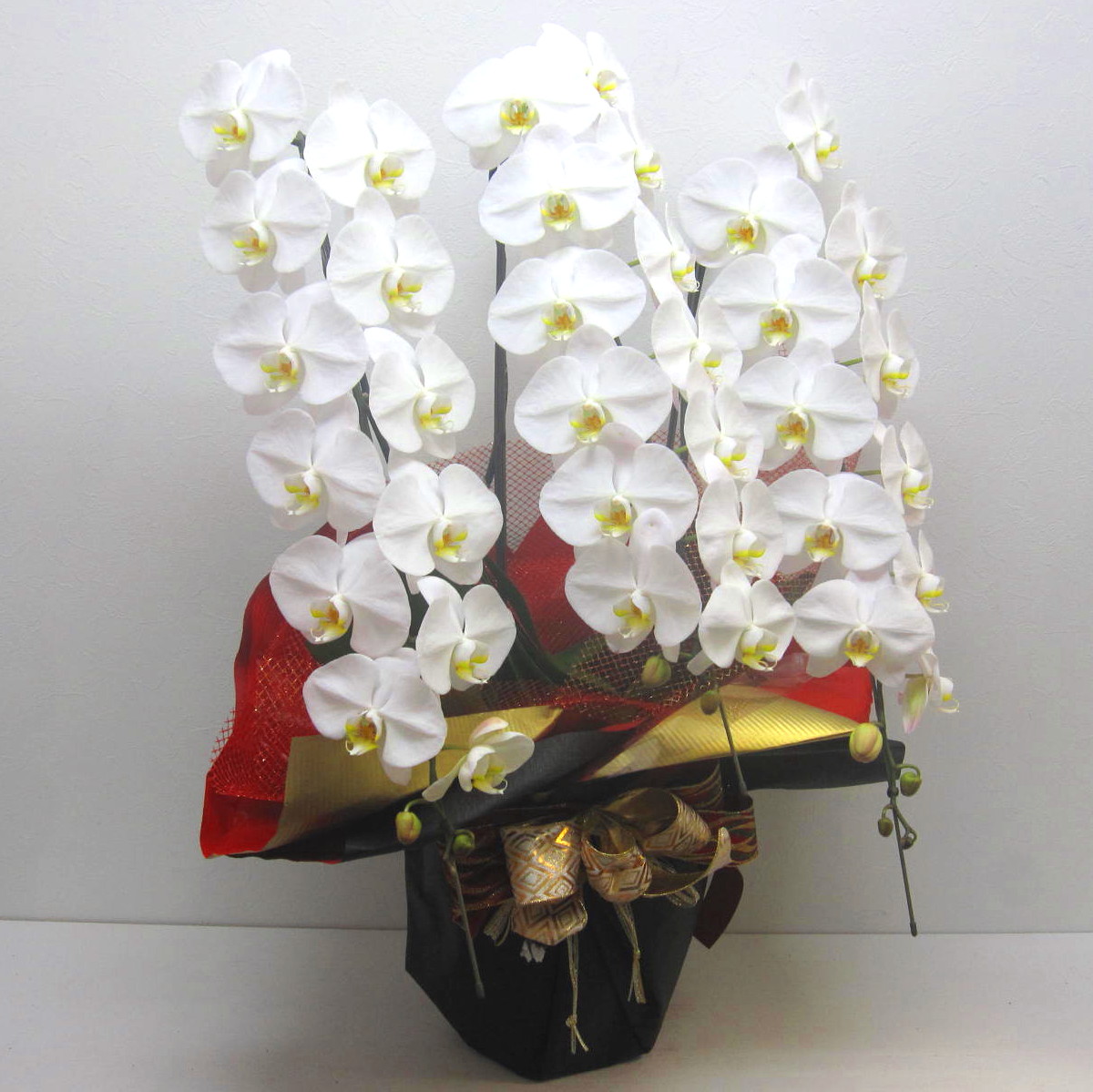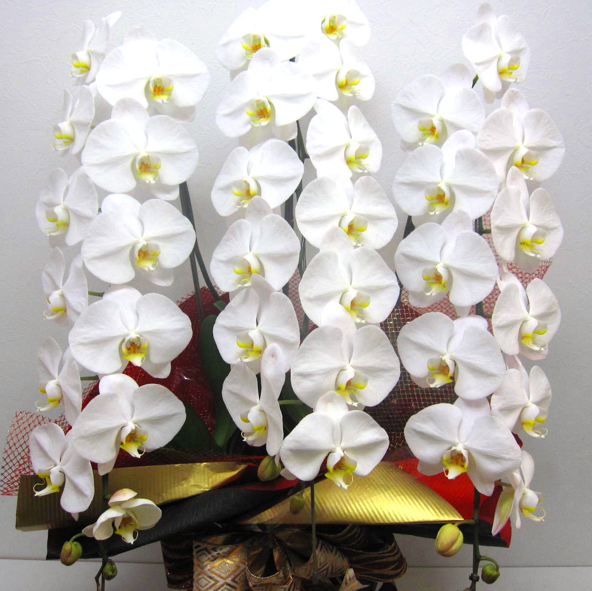 大輪の白色が美しい上品な花びらとズッシリトした佇まい、そしてだれにも真似できない煌びやかな最高級のモダンラッピングがまさにプレミア級の胡蝶蘭。輪数は44輪以上となります。ちょっぴりいつもと違うお祝いギフトにオススメです。※こちらの商品についてのご相談、ご質問等ございましたら(メール)または(お電話)にて承ります。