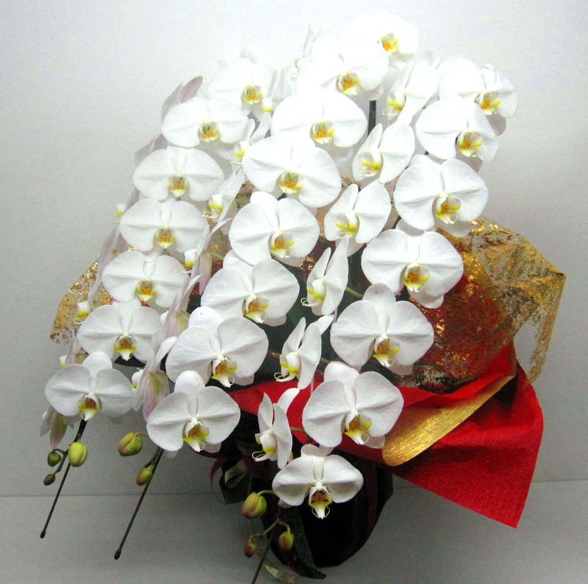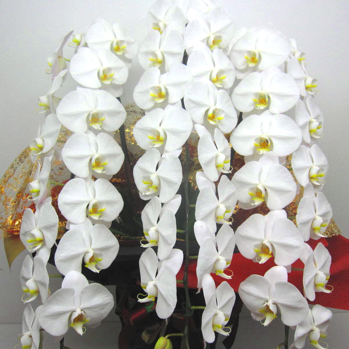 その日の朝、東京の市場から厳選した、高品質な胡蝶蘭です。大きさがなんと高さ約100cm×幅約50cm×奥行約55cmで見栄えもあります。人気のスタンダードタイプの白色の花弁が品格のある上品な雰囲気を演出。大切な日を華やかに演出してくれますよ。また、ご購入されたお客様から「大変花持ちが良い」と高い評価を頂いております。静岡県長泉町から日本全国【真心】込めてお届けいたします。さまざまなお祝い用途に贈る贈り物としてオススメです。大切な方へ贈るフラワーギフトやプレゼントなら「花樹園オンラインドットコム」に是非、お任せ下さいませ。