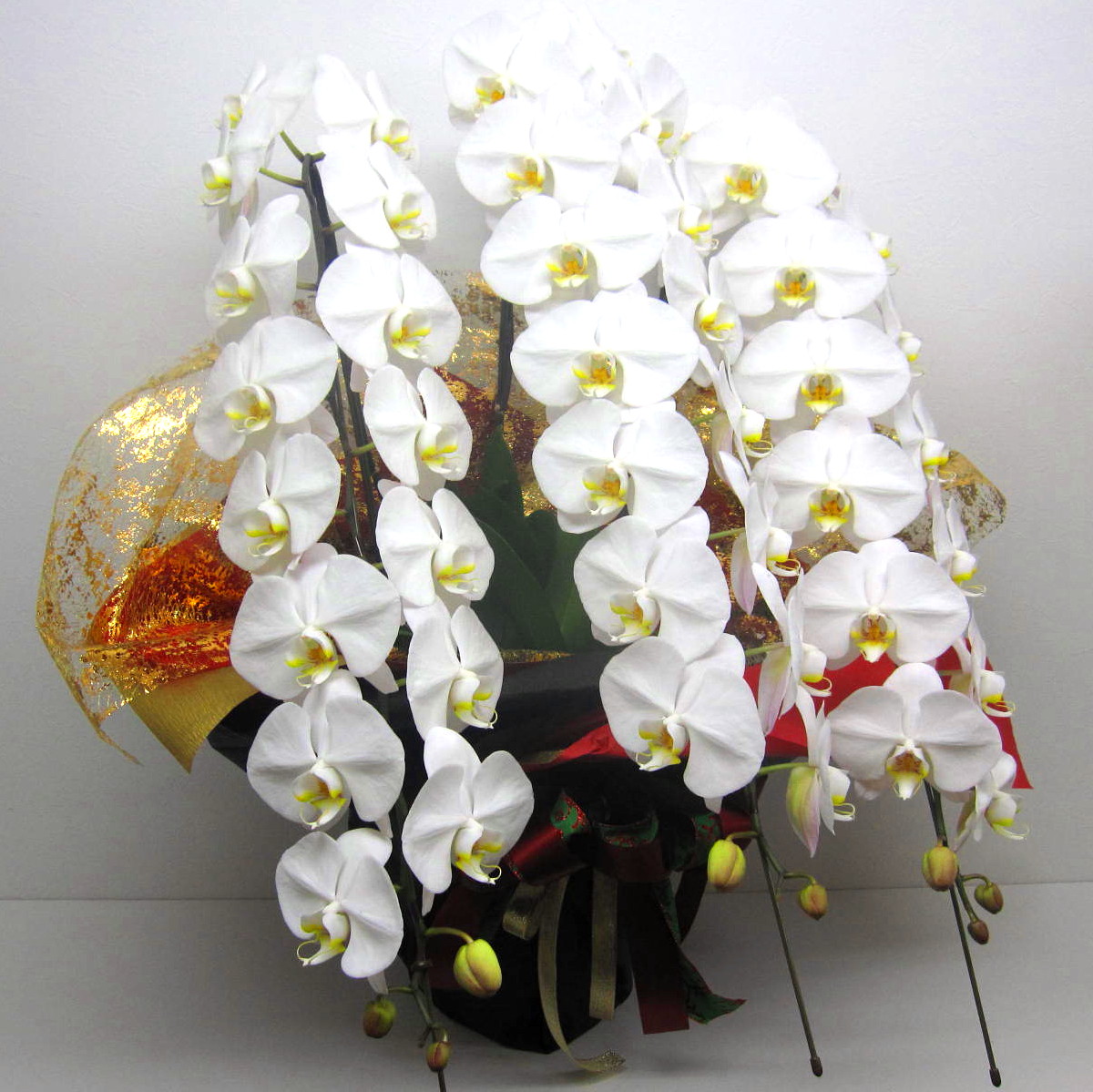 人気の高い大輪系の白色の胡蝶蘭。1本につぼみまで含めると17輪以上お花が付いている超ロング胡蝶蘭。それが3本ですから迫力と見栄えが他と比べ物になりません。本当にオススメです。このサイズは常時在庫はありますので是非、さまざまなお祝いにいかがですか。【15時迄のご注文で翌日届きます】【メッセージカードやお名札も(無料)】でお付け致します※こちらの商品についてのご相談、ご質問等ございましたら(メール)または(お電話)にて承ります。