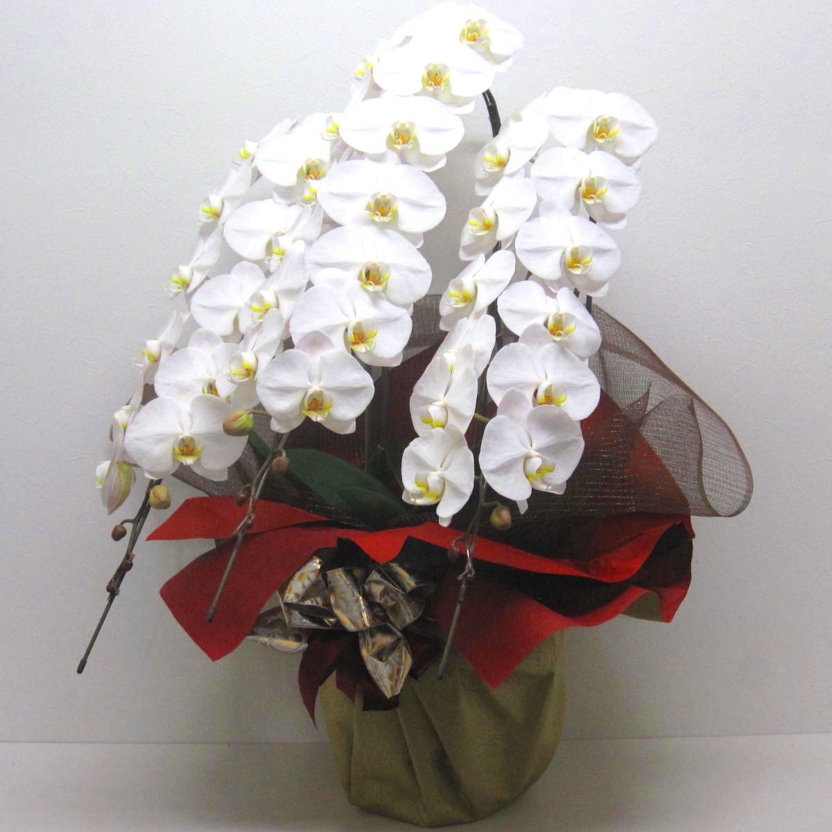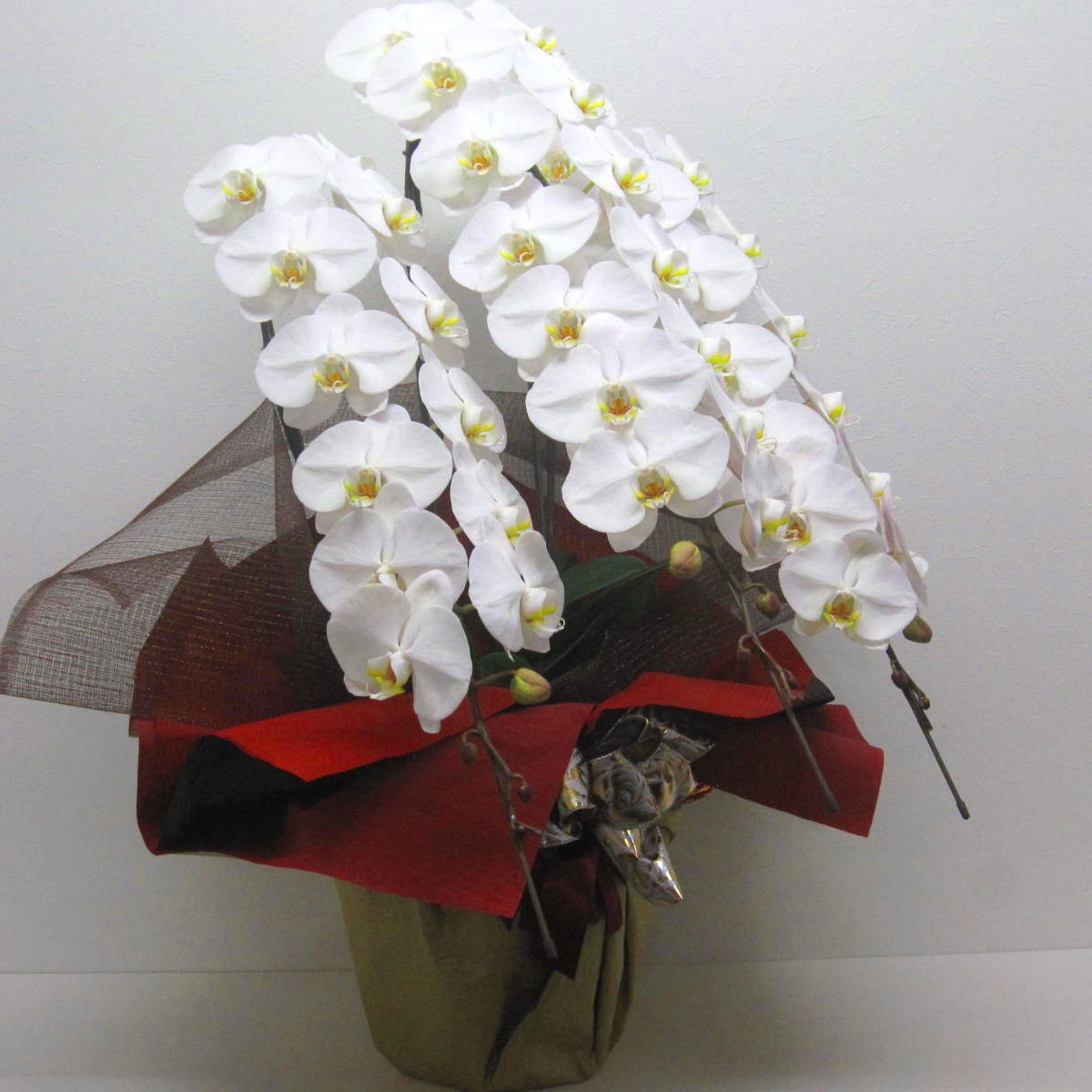 豪華な3本立ちスーパーロング大輪白胡蝶蘭です。特別な贈り物におすすめです。【メッセージカードやお名札も(無料)】でお付け致します※こちらの商品についてのご相談、ご質問等ございましたら(メール)または(お電話)にて承ります。