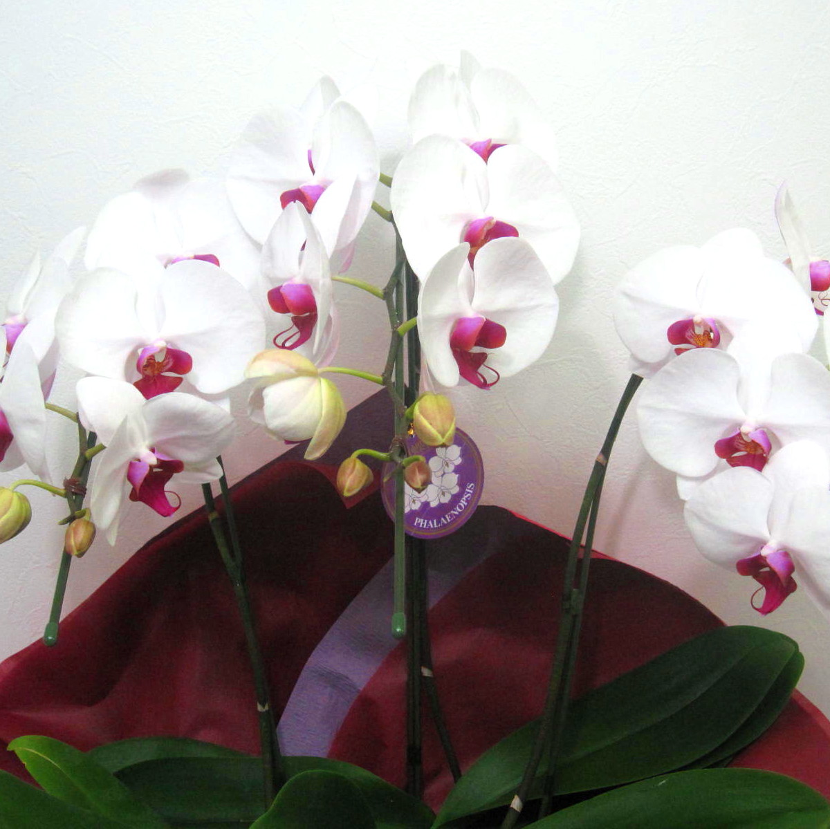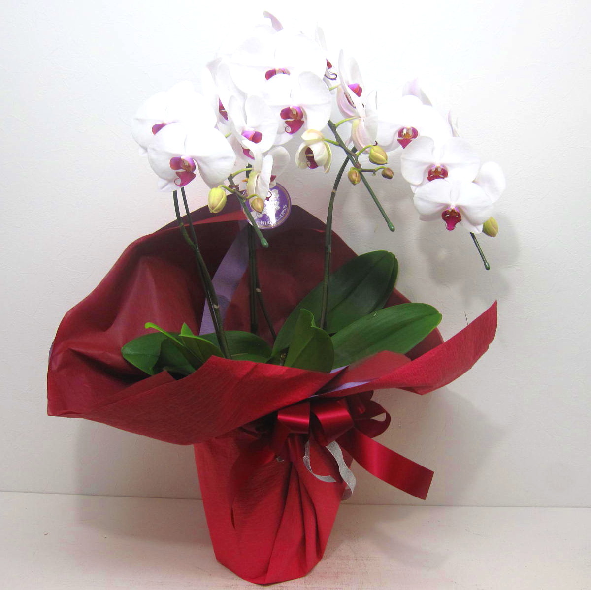 その日の朝、東京の市場から厳選した、高品質な胡蝶蘭です。大きさも高さ約90cm×幅約40cm×奥行約40cmで見栄えもあります。白い花弁に赤のリップが入った上品な雰囲気が大切な日を華やかに演出してくれますよ。また、ご購入されたお客様から「大変花持ちが良い」と高い評価を頂いております。静岡県長泉町から日本全国【真心】込めてお届けいたします。さまざまなお祝い用途に贈る贈り物としてオススメです。大切な方へ贈るフラワーギフトやプレゼントなら「花樹園オンラインドットコム」に是非、お任せ下さいませ。