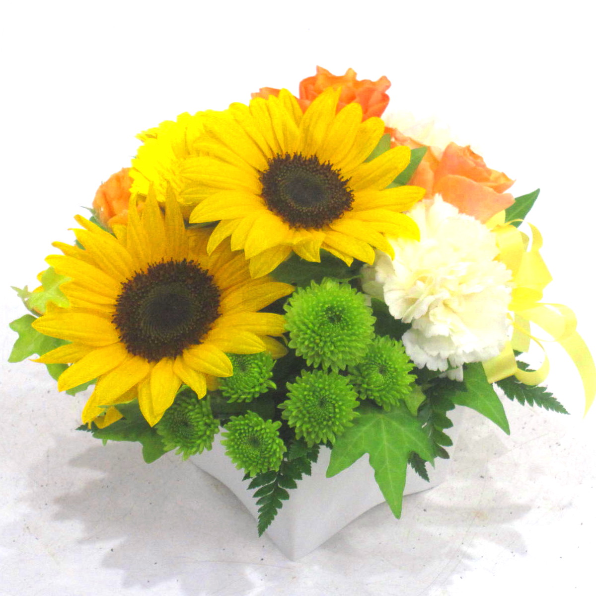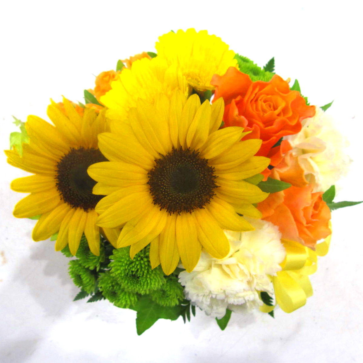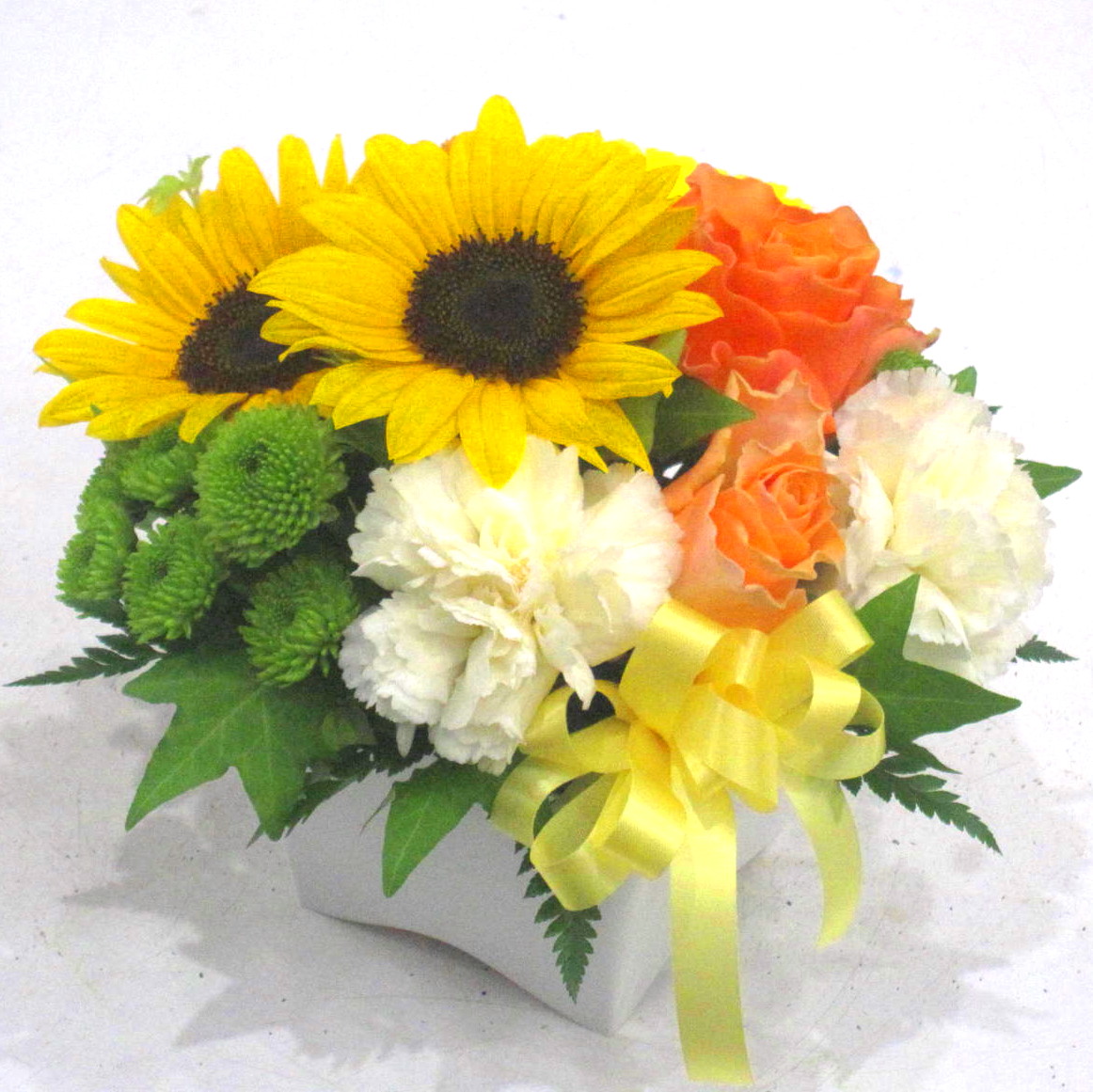 花材: メイン ヒマワリ、バラ、カーネーションなど その他 葉物類など