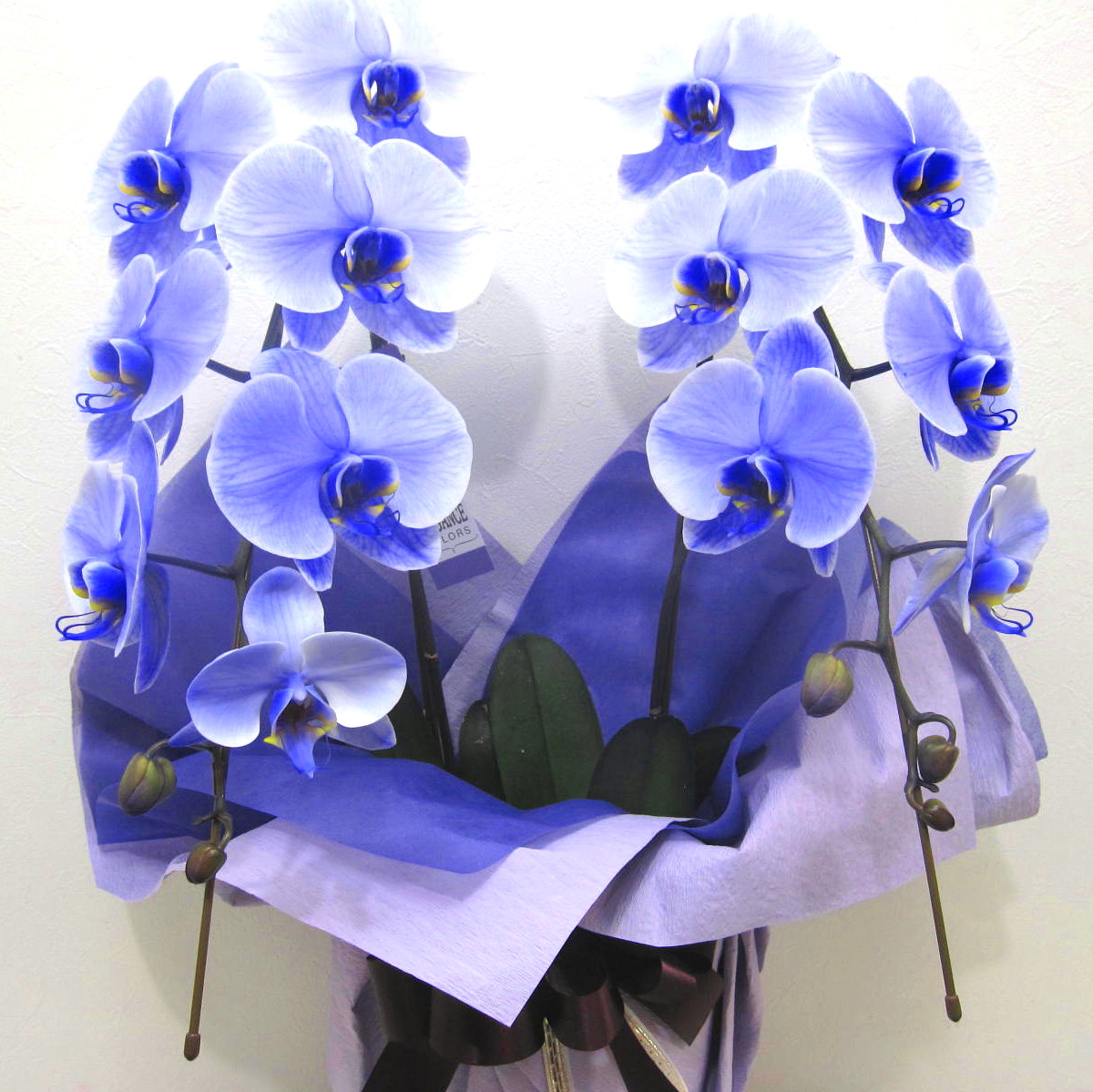 胡蝶蘭エレガンスシリーズは、新たな技術の染色による胡蝶蘭です。紫色の花弁で高貴なイメージ。お洒落で上品にラッピングします。大輪系の胡蝶蘭でだいたい15輪以上お花が付いています。蘭好きな大切な方に、言葉では照れくさい想いをきっと届けてくれる胡蝶蘭です。お誕生日、御祝や開店・開業祝い、展示会などさまざまな贈り物に。後払い決済&クレジット決済可能です。その他、わからないことやご相談等ございましたらお気軽にお問合せ下さい。