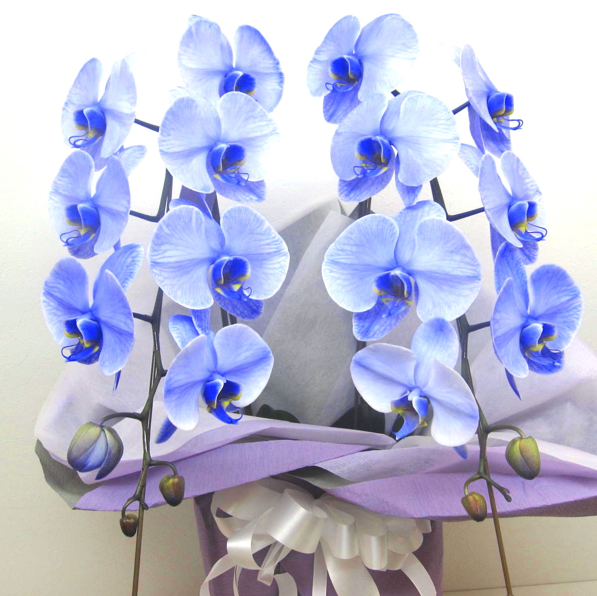 胡蝶蘭エレガンスシリーズは、新たな技術の染色による胡蝶蘭です。希少な紫色の胡蝶蘭をお供え用に淡くラッピングしました。大輪系の胡蝶蘭でだいたい15輪以上お花が付いています。また、大きさもコンパクトでスタイリッシュな感じなので置き場所を選ばず、ご仏壇の横のスペースに飾っていただけるとちょうど良いかもしれません。手入れも簡単で花持ちも抜群です。故人を偲ぶさまざまなシーンでお使い頂けます。当店ではお客様の想い大切に【こころを込めて】お作りいたします。後払い決済&クレジット決済可能です。その他、わからないことやご相談等ございましたらお気軽にお問合せ下さい。