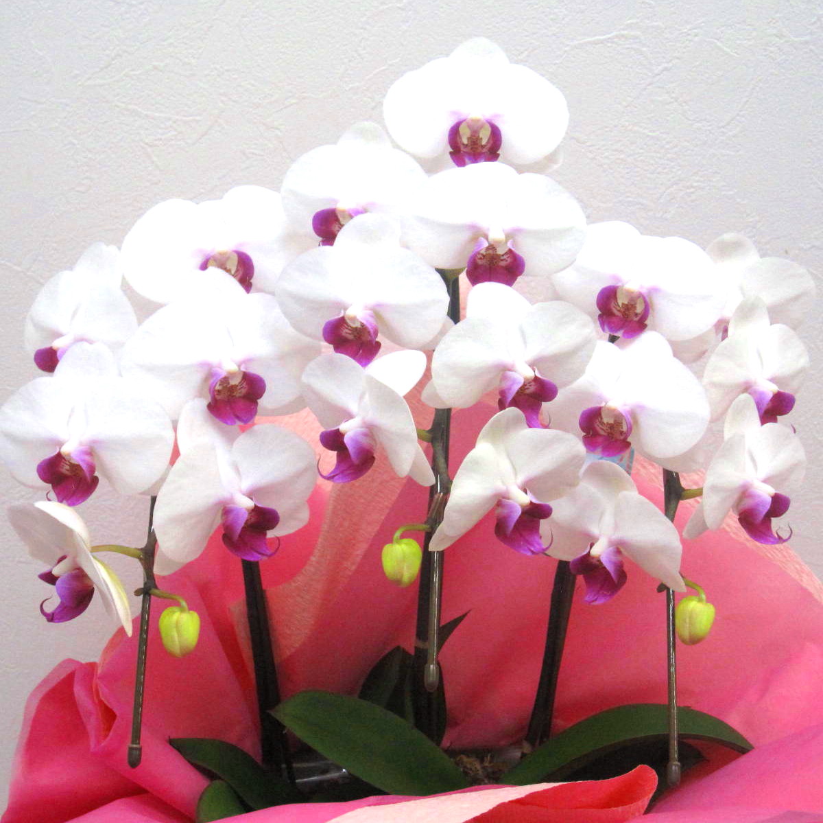 珍しい白の花弁に赤いリップがついた珍しい胡蝶蘭です。お花はだいたい20輪以上お花が付いています。大きさはコンパクトなサイズです。置き場所には困りませんね!!もちろん花持ちも抜群です。蘭好きな大切な方に言葉では照れくさい想いをきっと届けてくれる胡蝶蘭です。また、ご利用されたお客様から「大変花持ちが良い」と好評をいただいております。静岡県長泉町から日本全国【真心】込めてお届けいたします。さまざまなご用途に贈る贈り物としてオススメです。大切な方へ贈るフラワーギフトやプレゼントなら「花樹園オンラインドットコム」に是非、お任せ下さいませ。※後払い決済&クレジット決済可能です。その他、わからないことやご相談等ございましたらお気軽にお問合せ下さい。