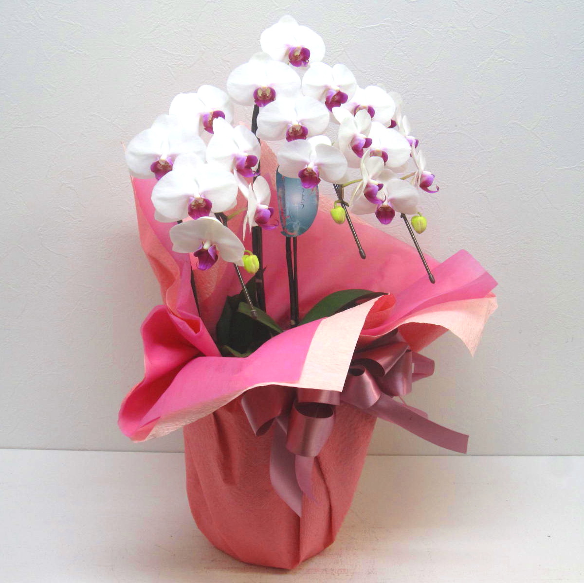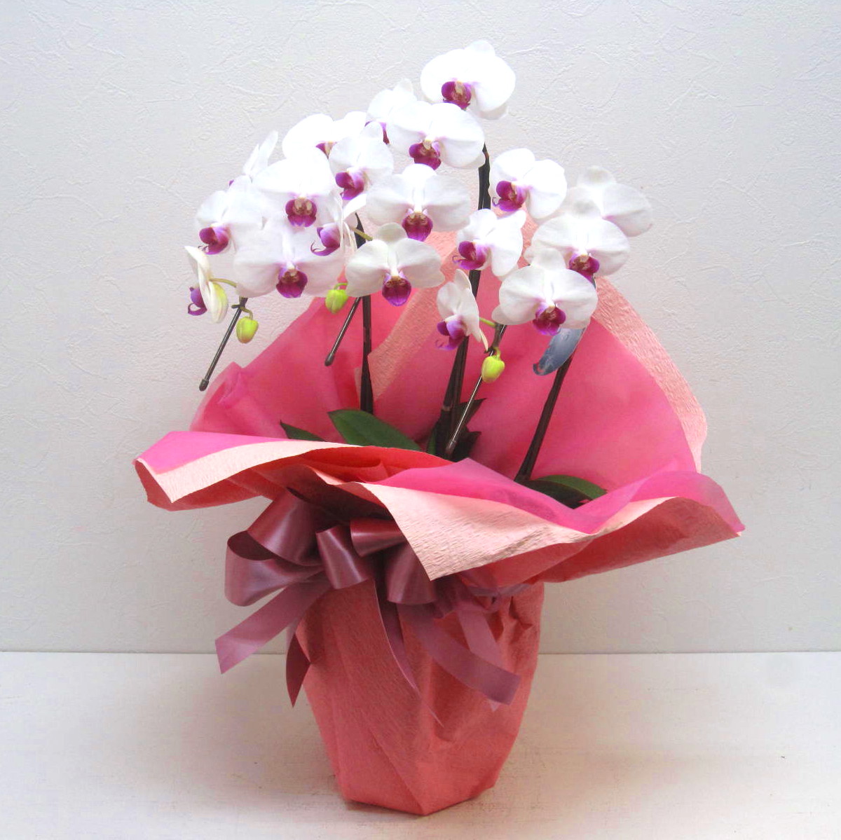 花材: メイン 胡蝶蘭【品種・小輪白赤(3本立ち)】 その他 贈答用に綺麗に美しくラッピング致します。