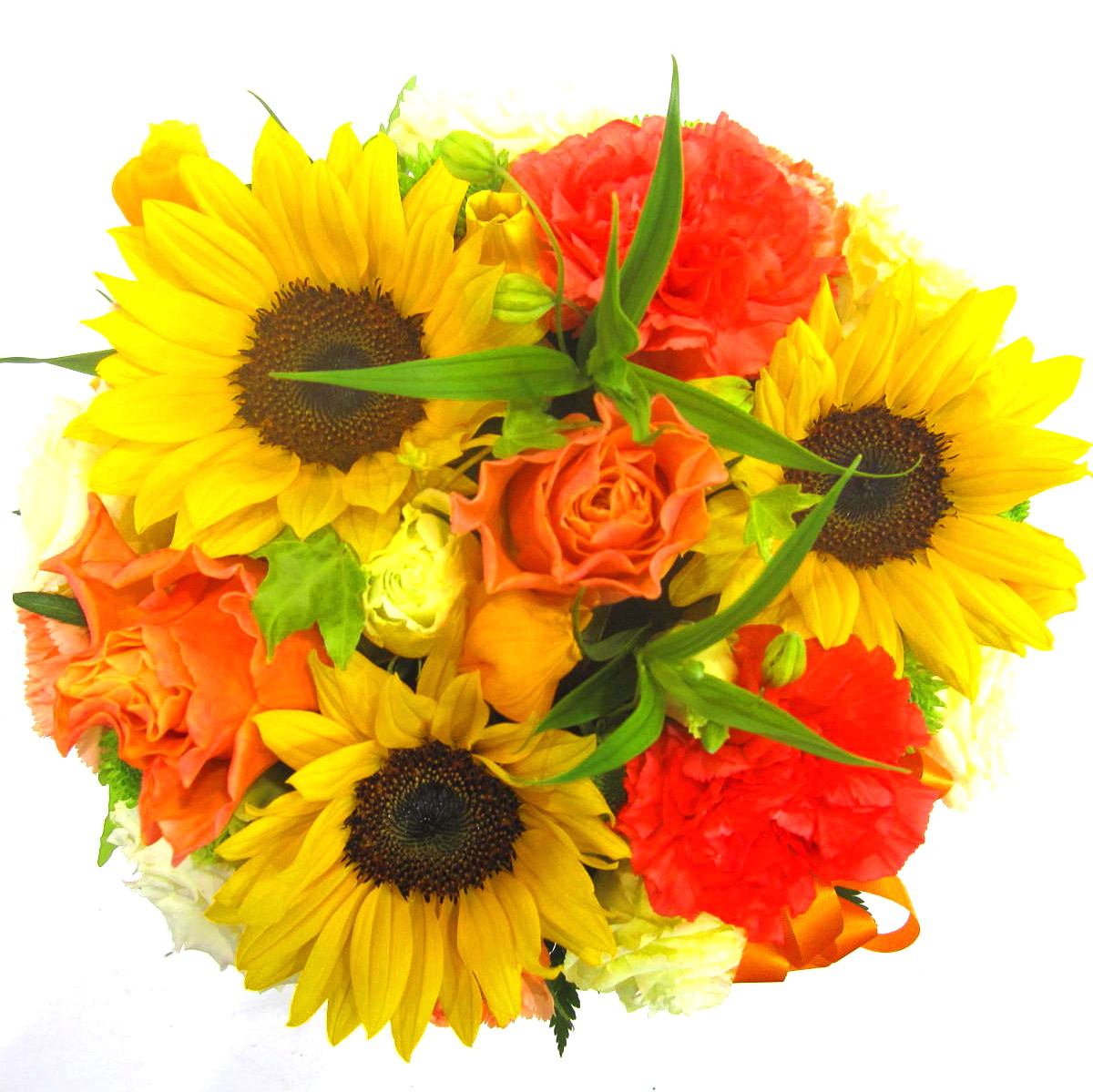 花材: メイン ヒマワリ、バラ、カーネーションなど その他 葉物類など