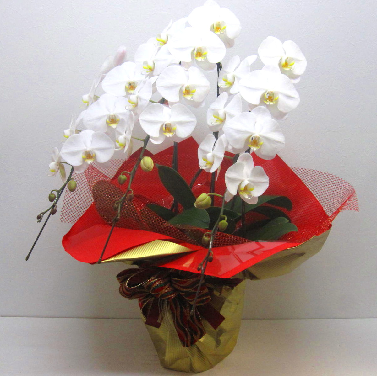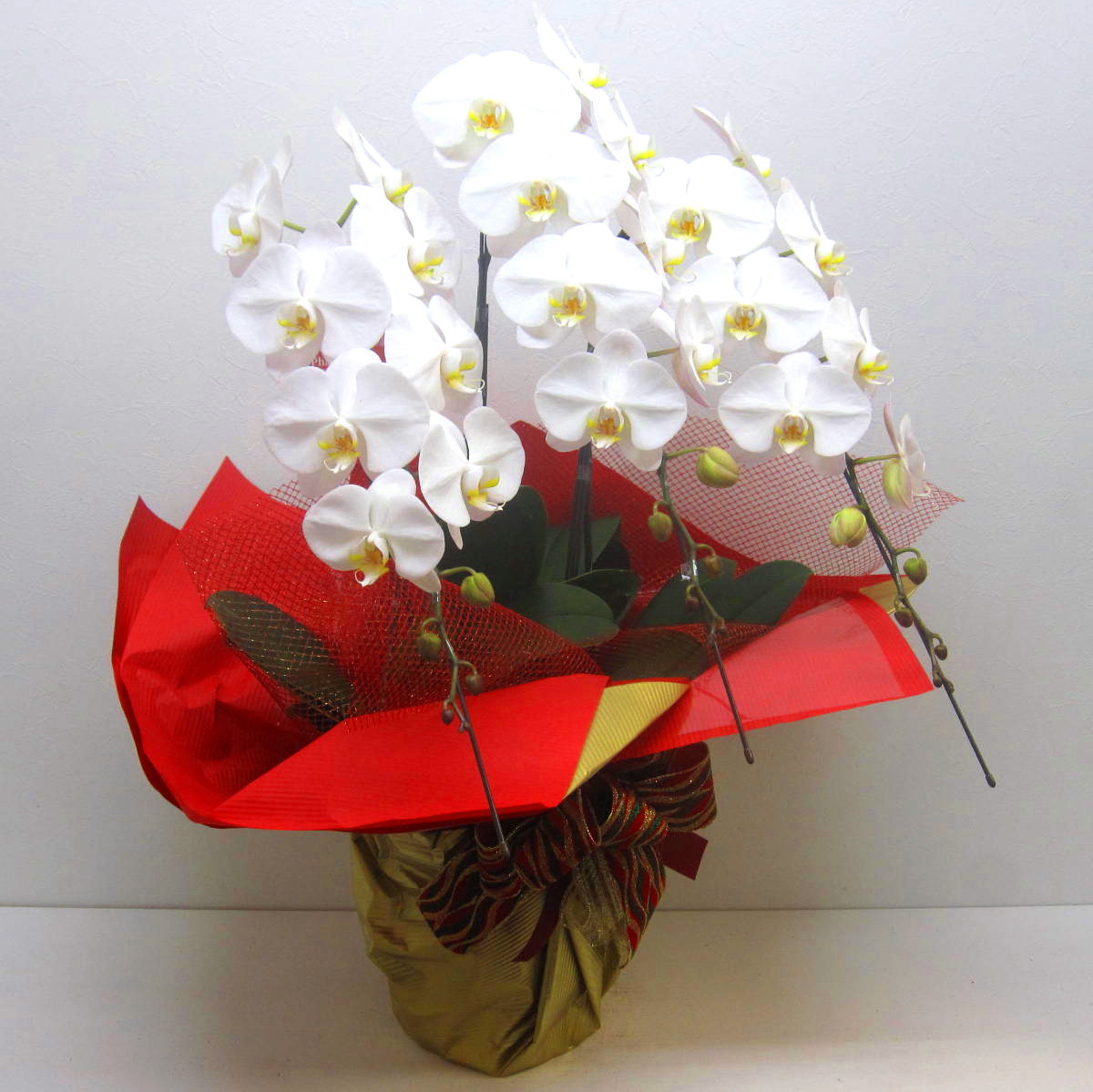 市場で厳選した高品質の生産者が仕立てるボリューム重視の3本立ち大輪胡蝶蘭です。【15時迄のご注文で翌日届きます】【メッセージカードやお名札も(無料)】でお付け致します※こちらの商品についてのご相談、ご質問等ございましたら(メール)または(お電話)にて承ります。