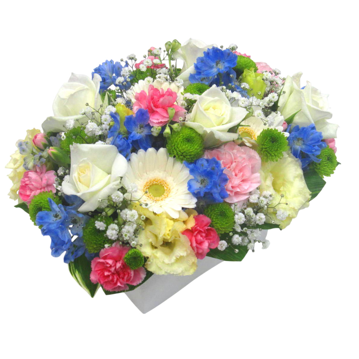 明るいお花達が生き生きと咲き誇っているアレンジメントです。年代問わず人気のフラワーギフトです。また、ご利用されたお客様から「大変花持ちが良い」と好評をいただいております。静岡県長泉町から日本全国【真心】込めてお届けいたします。春のさまざまなご用途に贈る贈り物としてオススメです。大切な方へ贈るフラワーギフトやプレゼントなら「花樹園オンラインドットコム」に是非、お任せ下さいませ。