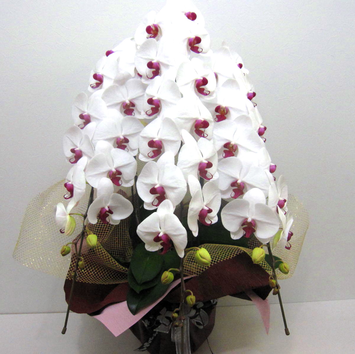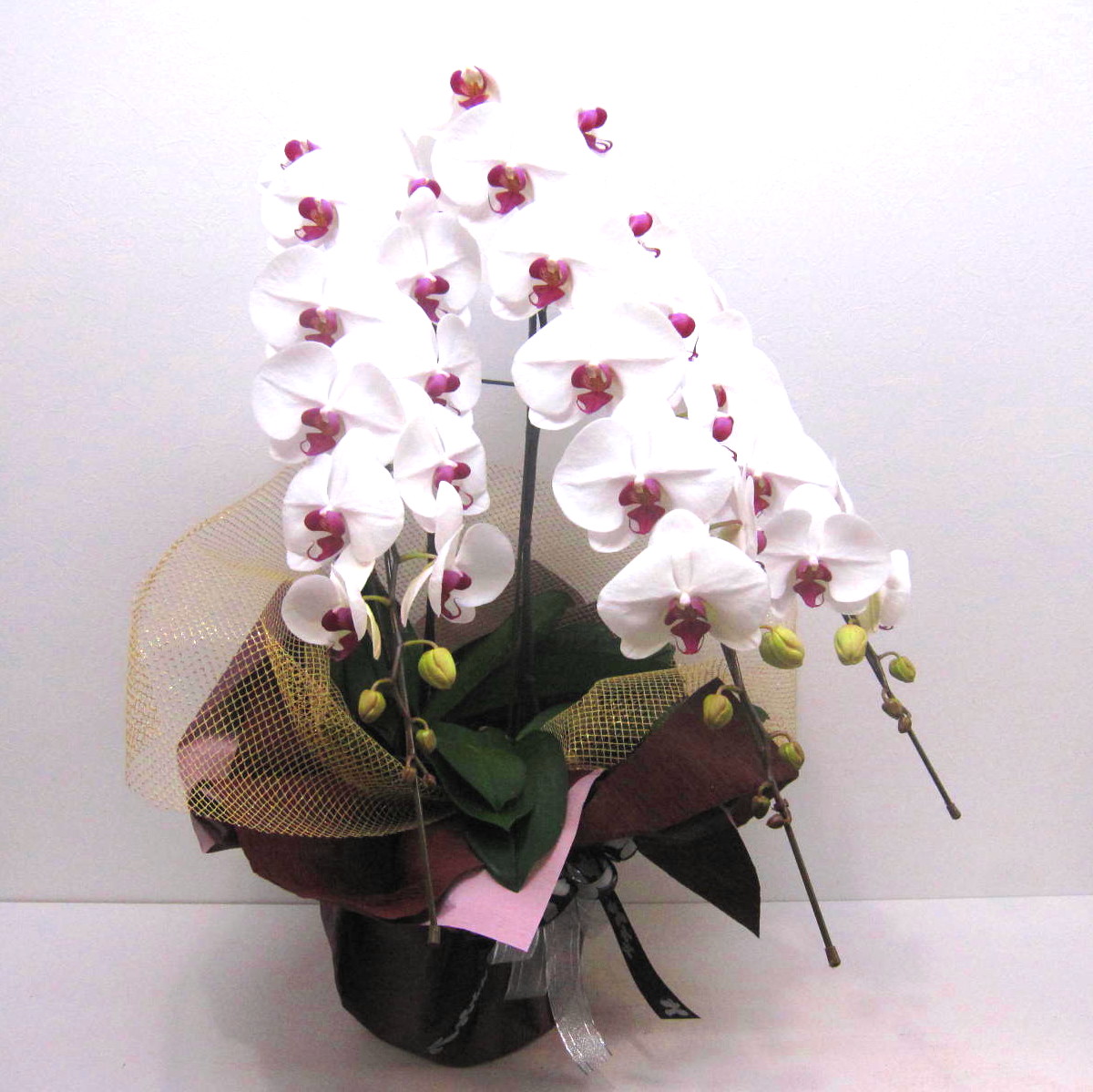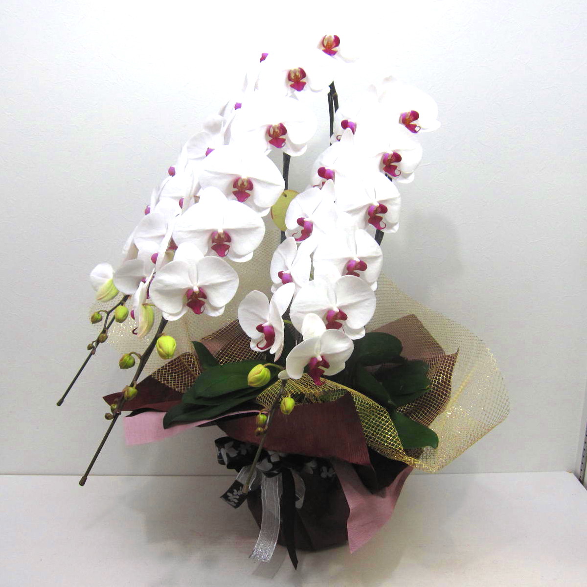 市場であまり出回らない豪華な3本立ちスーパーロング大輪白赤胡蝶蘭です。【メッセージカードやお名札も(無料)】でお付け致します※こちらの商品についてのご相談、ご質問等ございましたら(メール)または(お電話)にて承ります。