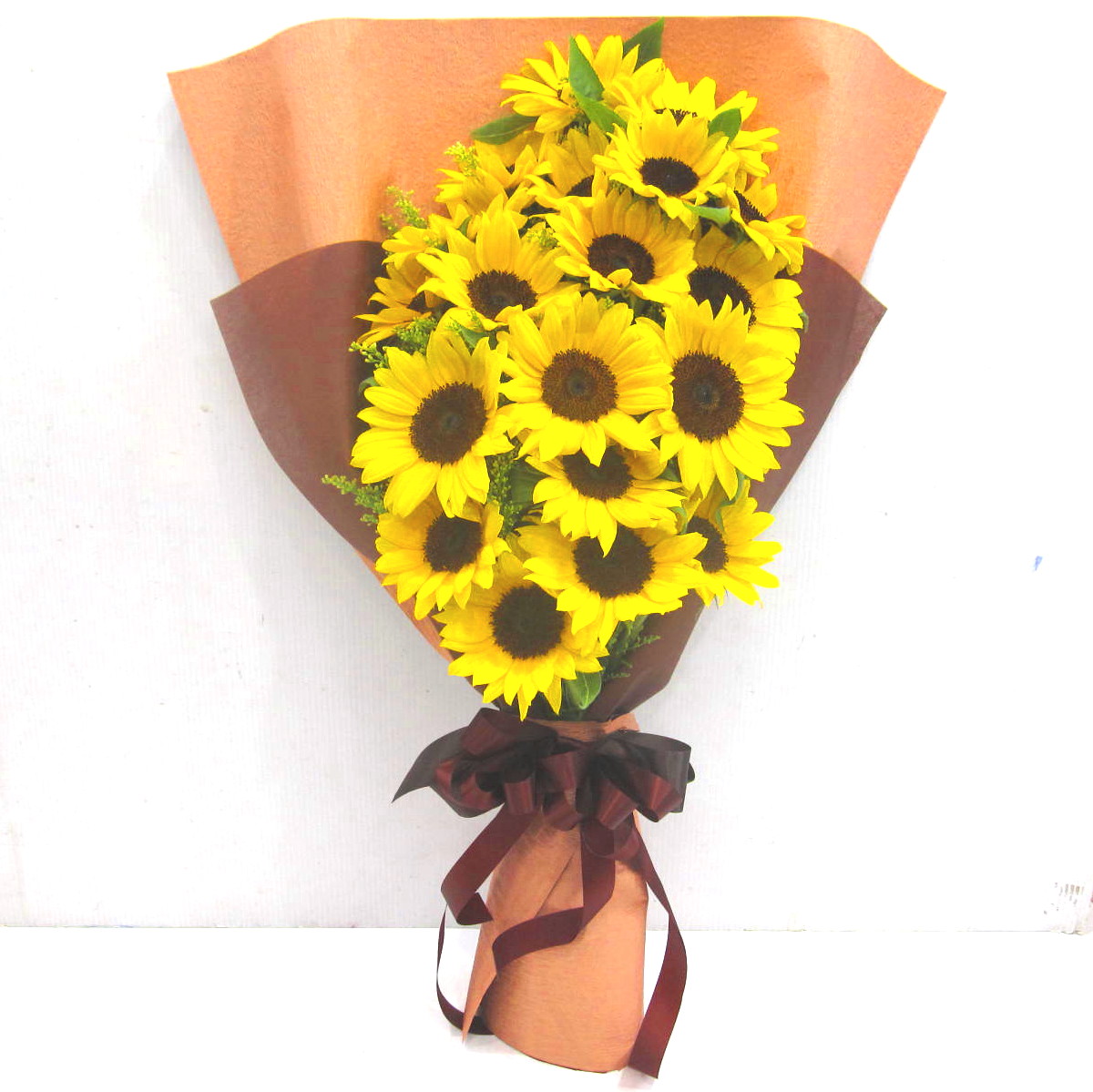 夏の定番【ひまわり】の華やかな花束。【ご希望の本数指定でもお作りします】その際、お電話にてお問い合わせ下さい。花樹園(TEL.055-960-8739)