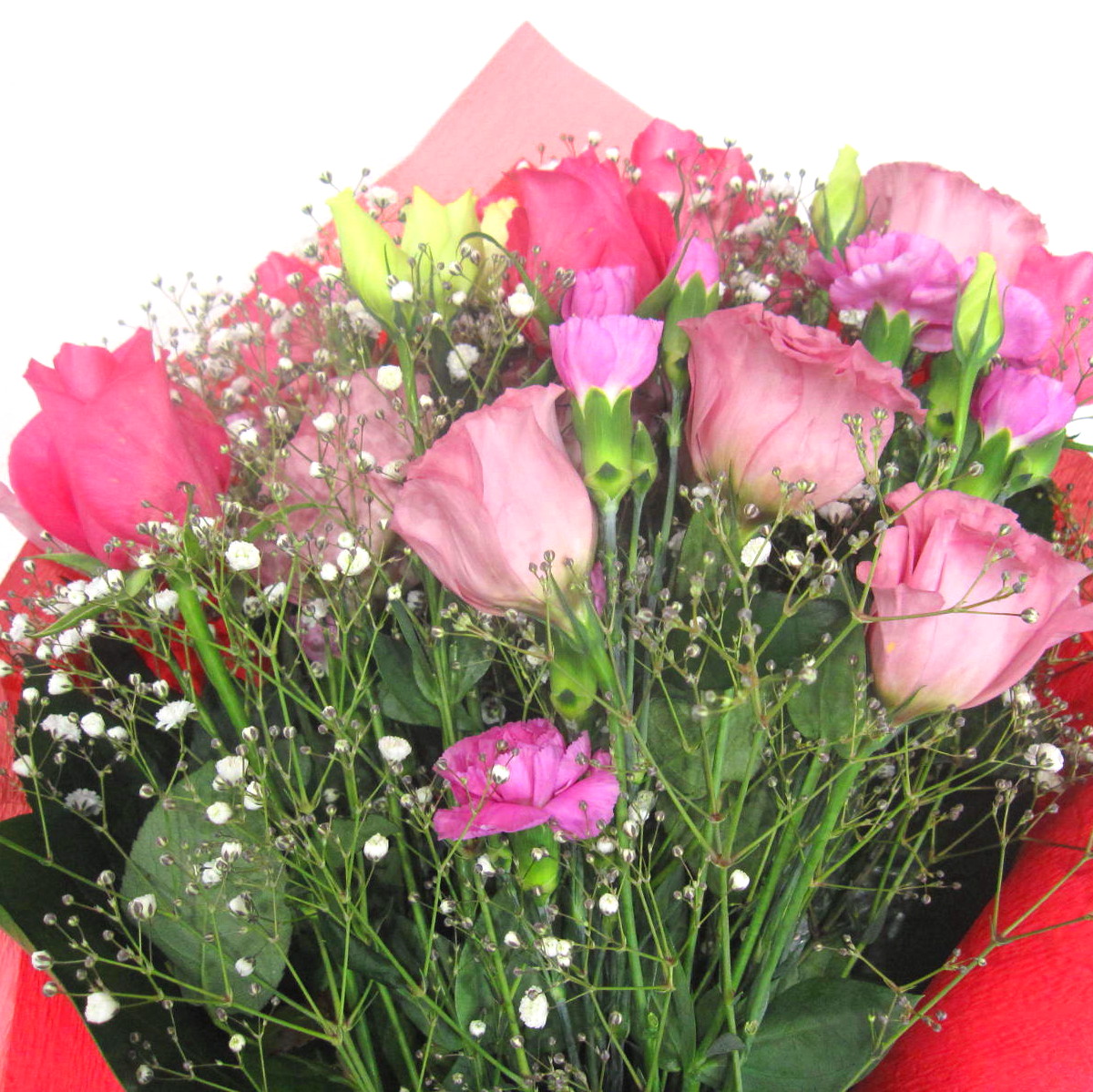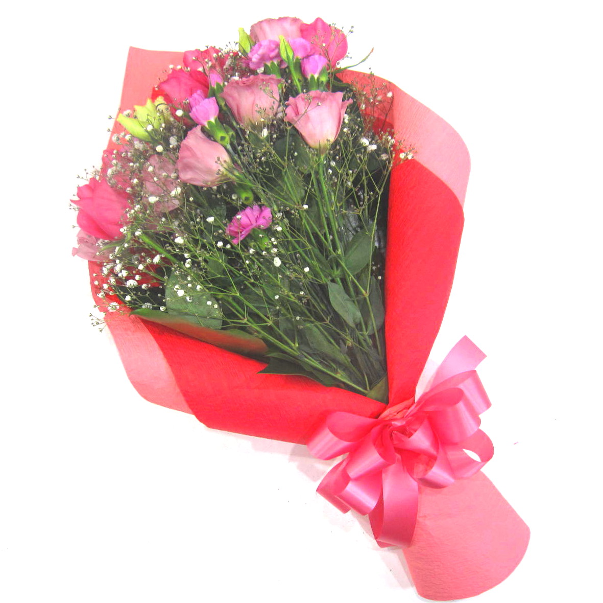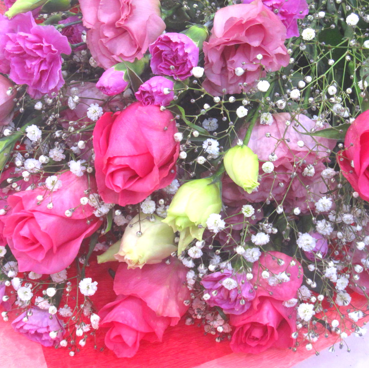 ピンクの明るい色合いと「バラ」と「トルコギキョウ」の品の良さが際立つ華やかな花束です。ラッピングも高級感のある和紙を使って素敵にお包みいたします。また、持ちの良いお花を中心に使っておりますので花持ちも良いでしょう。ご購入されたお客様から高い評価を頂いております。静岡県長泉町から日本全国【真心】込めてお届けいたします。さまざまなご用途に贈る贈り物としてオススメです。大切な方へ贈るフラワーギフトやプレゼントなら「花樹園オンラインドットコム」に是非、お任せ下さいませ。